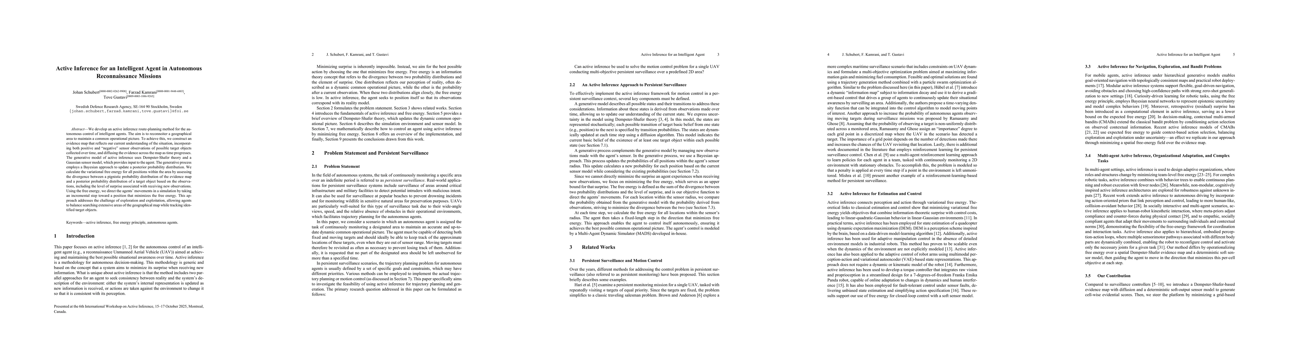 The research employs active inference and the free energy principle to develop a control strategy for intelligent agents, integrating sensor data with predictive models to optimize decision-making and path planning.
