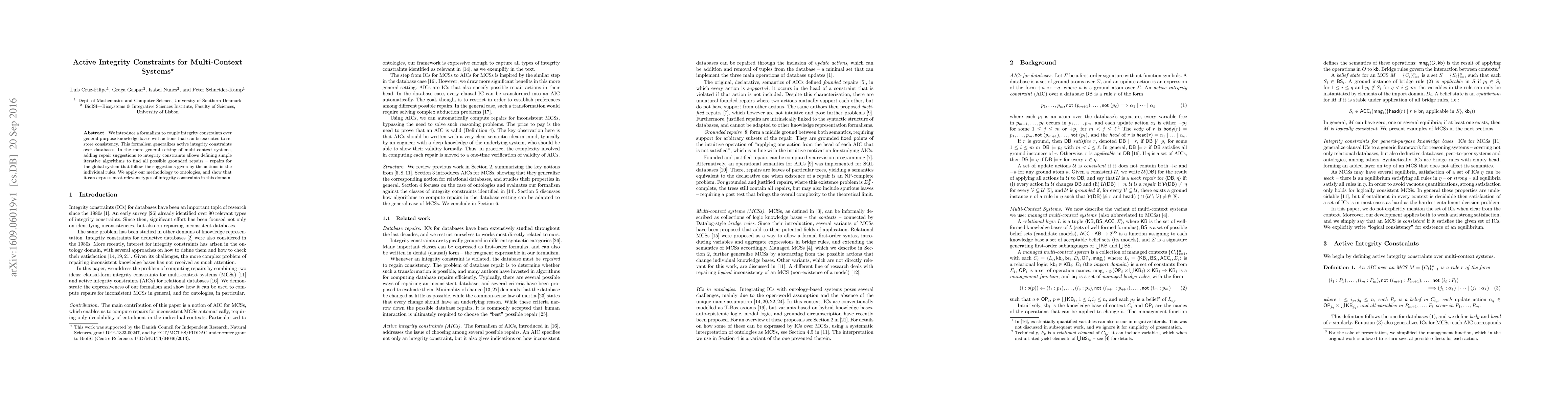 This paper proposes a formalism for active integrity constraints in multi-context systems, enabling the restoration of consistency through executable actions. It generalizes active integrity constraints for databases and applies the methodology to ontologies to express various types of integrity constraints.