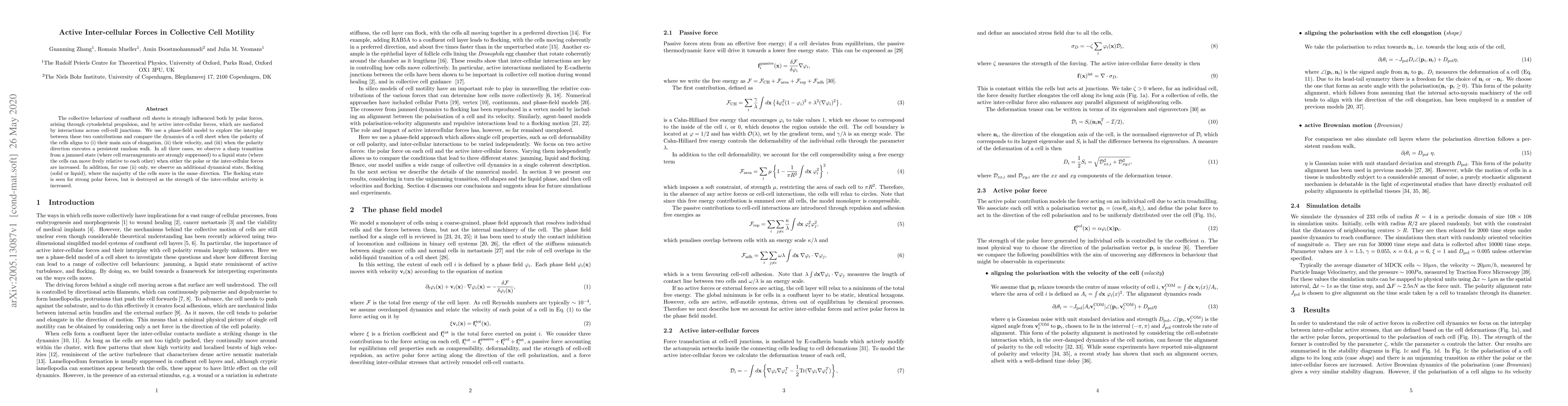 This study uses a phase-field model to investigate how collective cell sheet movement is influenced by both intracellular polar forces and active intercellular forces. It identifies three main scenarios based on polarity alignment and discovers a transition from jammed to liquid states with increased force. Uniquely, strong polar forces lead to a flocking state, which dissolves with higher intercellular activity, revealing crucial insights into cell motility dynamics.