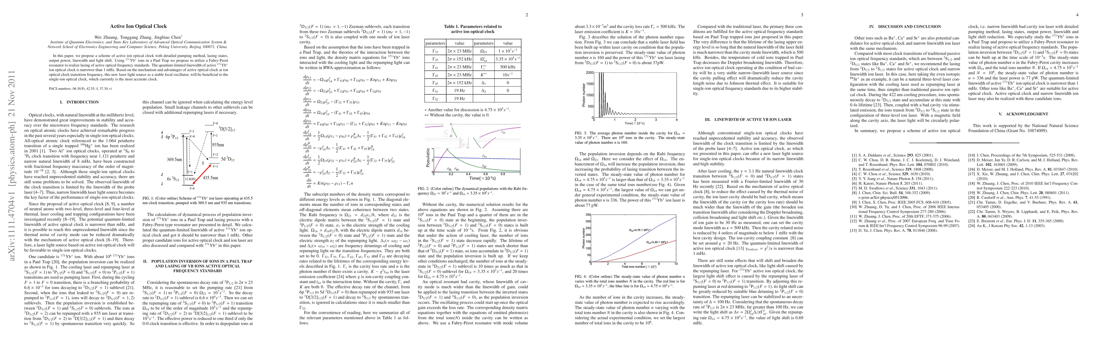 This paper proposes an active ion optical clock using 171Yb+ ions in a Paul Trap with a Fabry-Perot resonator for lasing, achieving a quantum-limited linewidth narrower than 1 mHz, potentially enhancing the accuracy of single-ion optical clocks.