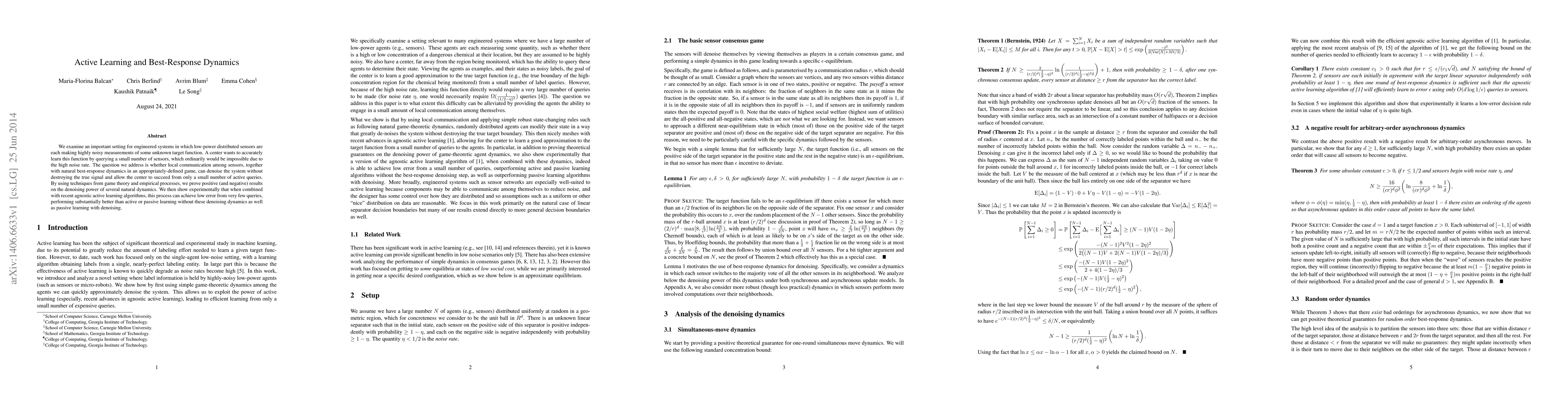 This paper investigates how local communication among noisy distributed sensors, coupled with best-response dynamics, can denoise measurements and enable a central system to accurately learn an unknown target function with minimal queries. Theoretical and empirical results demonstrate that this approach outperforms both active and passive learning methods.