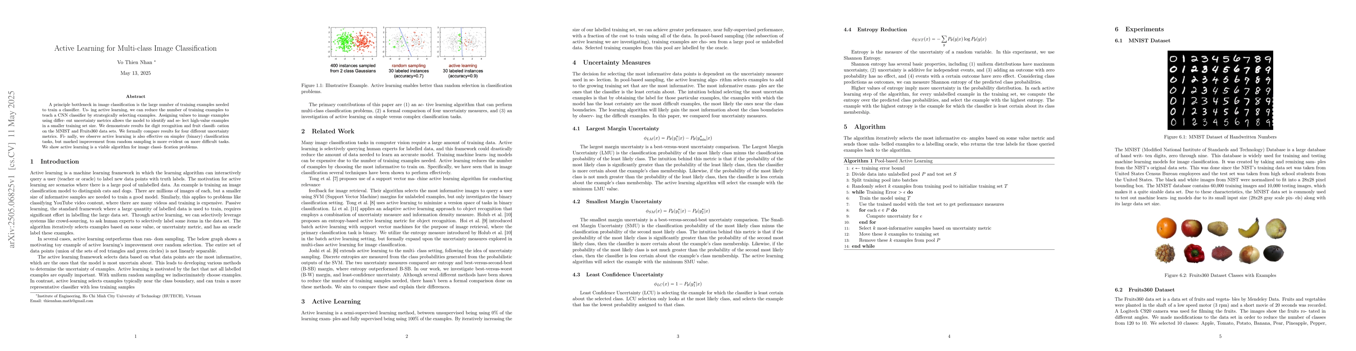 This research paper explores how active learning can improve image classification by strategically selecting examples to reduce training data needs, with promising results in digit recognition and fruit classification tasks.