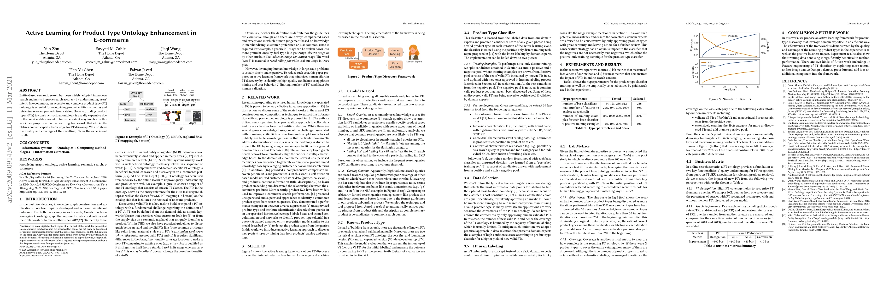 A new active learning framework is proposed to efficiently discover product types for e-commerce ontologies using domain experts' knowledge, improving search accuracy and reducing human effort.