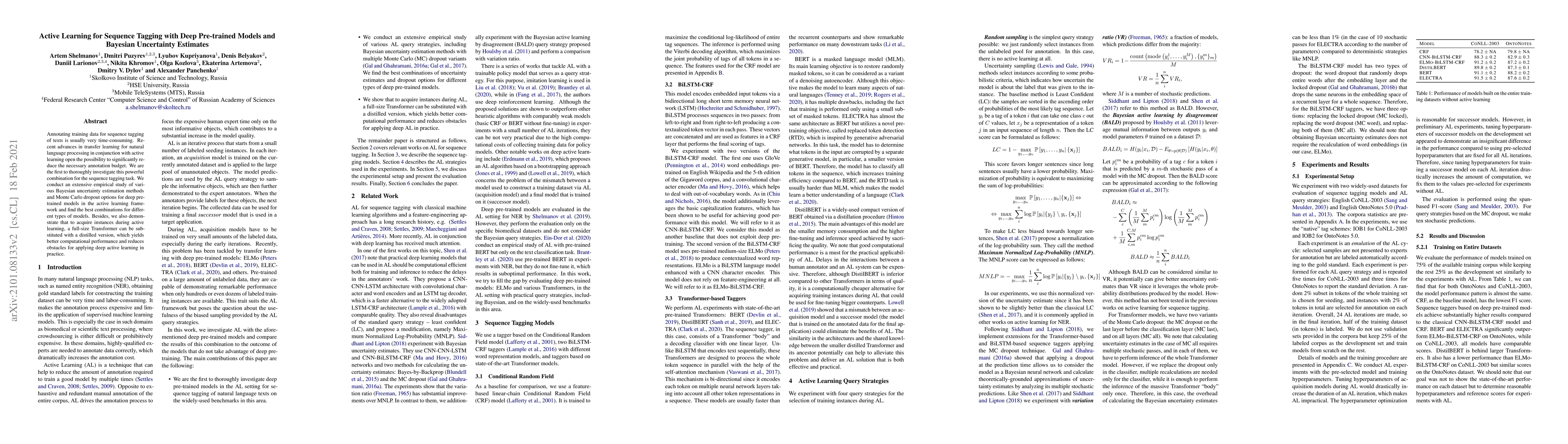 This paper explores the integration of active learning with deep pre-trained models and Bayesian uncertainty estimates to reduce the annotation effort for sequence tagging. The study identifies optimal combinations of uncertainty estimation methods and demonstrates that distilled Transformers can effectively replace full-size models, enhancing computational efficiency and practical application.