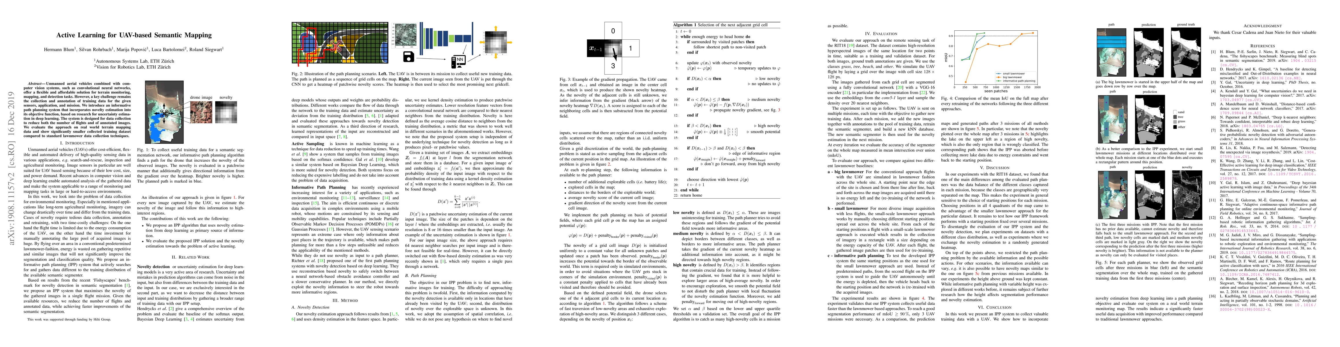 This paper proposes an active learning system for UAV-based semantic mapping that uses novelty estimation to optimize data collection, significantly reducing the number of flights and annotated images needed compared to traditional methods. The approach is validated through real-world terrain mapping, demonstrating its effectiveness.