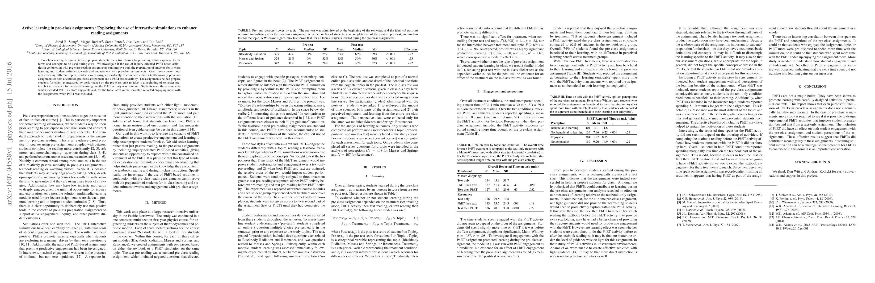 Pre-class reading assignments help prepare students for active classes by providing a first exposure to the terms and concepts to be used during class. We investigate if the use of inquiry-oriented PhET-based activities in conjunction with pre-class reading assignments can improve both the preparation of students for in-class learning and student attitudes towards and engagement with pre-class assignments. Over three course modules covering different topics, students were assigned randomly to complete either a textbook-only pre-class assignment or both a textbook pre-class assignment and a PhET-based activity. The assignments helped prepare students for class, as measured by performance on the pre-class quiz relative to a beginning-of-semester pre-test, but no evidence for increased learning due the PhET activity was observed. Students rated the assignments which included PhET as more enjoyable and, for the topic latest in the semester, reported engaging more with the assignments when PhET was included.