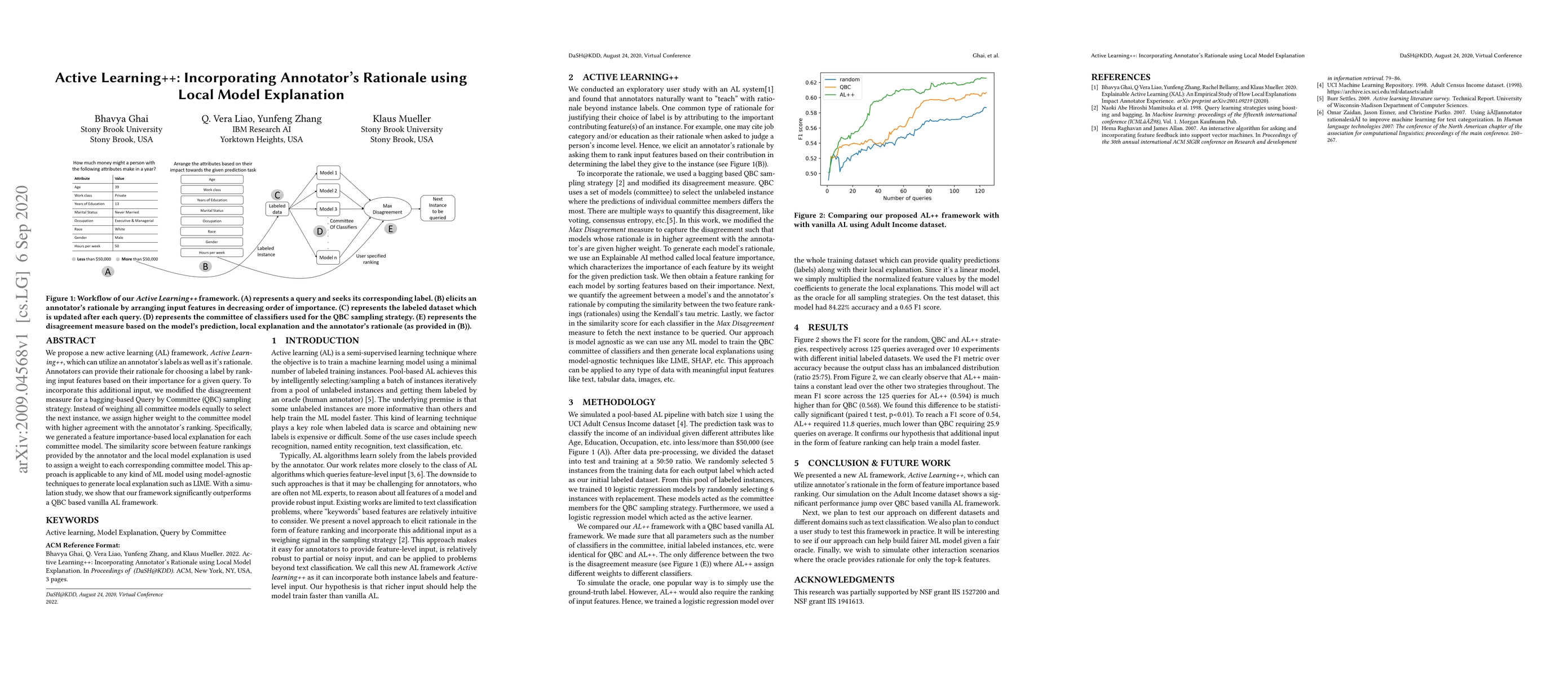 We propose a new active learning (AL) framework, Active Learning++, which can utilize an annotator's labels as well as its rationale. Annotators can provide their rationale for choosing a label by ranking input features based on their importance for a given query. To incorporate this additional input, we modified the disagreement measure for a bagging-based Query by Committee (QBC) sampling strategy. Instead of weighing all committee models equally to select the next instance, we assign higher weight to the committee model with higher agreement with the annotator's ranking. Specifically, we generated a feature importance-based local explanation for each committee model. The similarity score between feature rankings provided by the annotator and the local model explanation is used to assign a weight to each corresponding committee model. This approach is applicable to any kind of ML model using model-agnostic techniques to generate local explanation such as LIME. With a simulation study, we show that our framework significantly outperforms a QBC based vanilla AL framework.