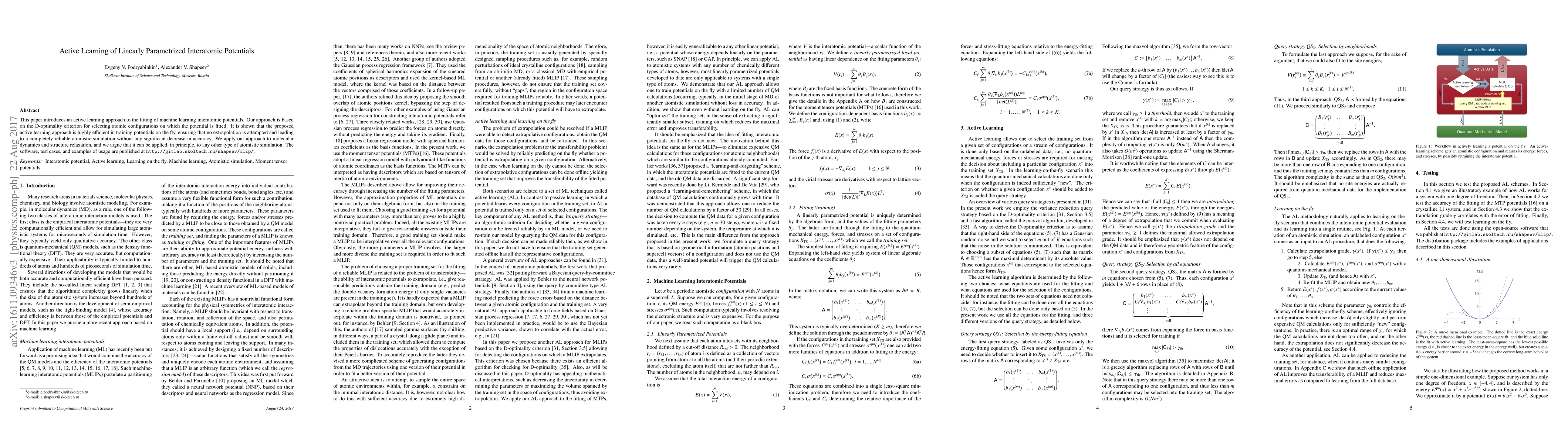 This paper introduces an active learning approach to the fitting of machine learning interatomic potentials. Our approach is based on the D-optimality criterion for selecting atomic configurations on which the potential is fitted. It is shown that the proposed active learning approach is highly efficient in training potentials on the fly, ensuring that no extrapolation is attempted and leading to a completely reliable atomistic simulation without any significant decrease in accuracy. We apply our approach to molecular dynamics and structure relaxation, and we argue that it can be applied, in principle, to any other type of atomistic simulation. The software, test cases, and examples of usage are published at http://gitlab.skoltech.ru/shapeev/mlip/.