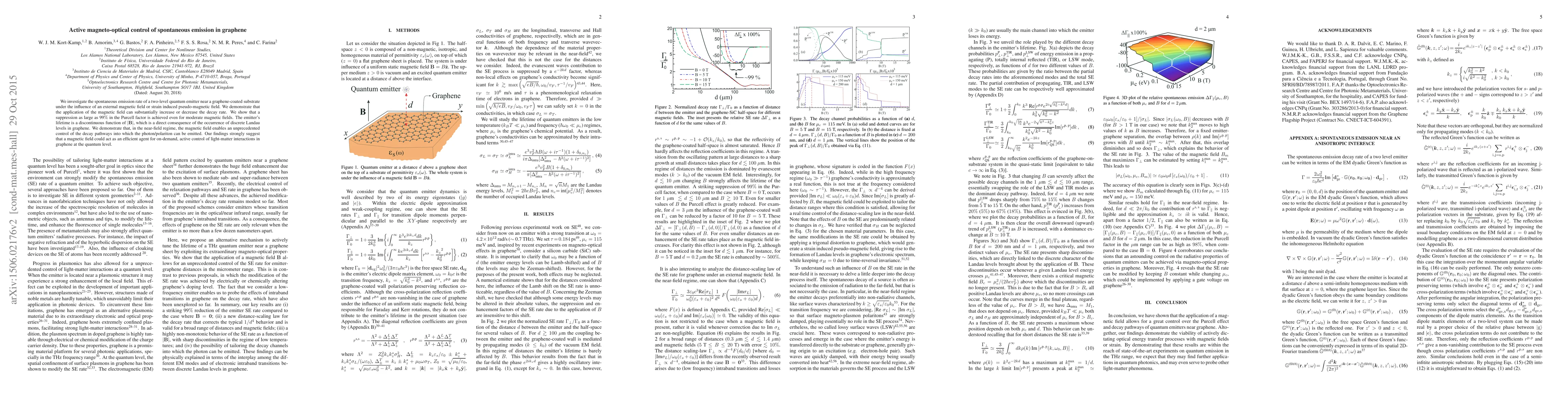 We investigate the spontaneous emission rate of a two-level quantum emitter near a graphene-coated substrate under the influence of an external magnetic field or strain induced pseudo-magnetic field. We demonstrate that the application of the magnetic field can substantially increase or decrease the decay rate. We show that a suppression as large as 99$\%$ in the Purcell factor is achieved even for moderate magnetic fields. The emitter's lifetime is a discontinuous function of $|{\bf B}|$, which is a direct consequence of the occurrence of discrete Landau levels in graphene. We demonstrate that, in the near-field regime, the magnetic field enables an unprecedented control of the decay pathways into which the photon/polariton can be emitted. Our findings strongly suggest that a magnetic field could act as an efficient agent for on-demand, active control of light-matter interactions in graphene at the quantum level.