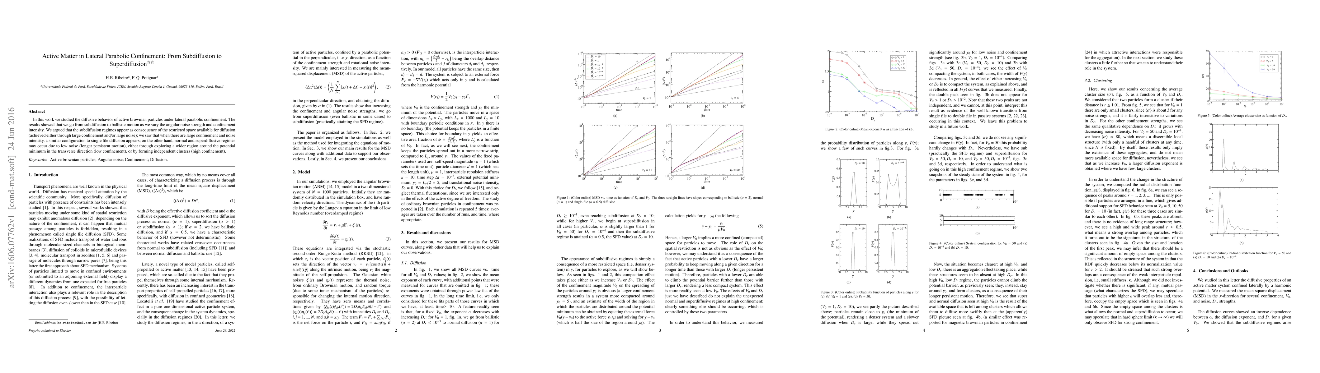 This paper investigates the diffusive behavior of active Brownian particles under lateral parabolic confinement, revealing transitions from subdiffusion to superdiffusion as angular noise strength and confinement intensity vary. The study finds that subdiffusion arises from restricted space, while superdiffusion occurs due to low noise and either wider exploration or cluster formation.
