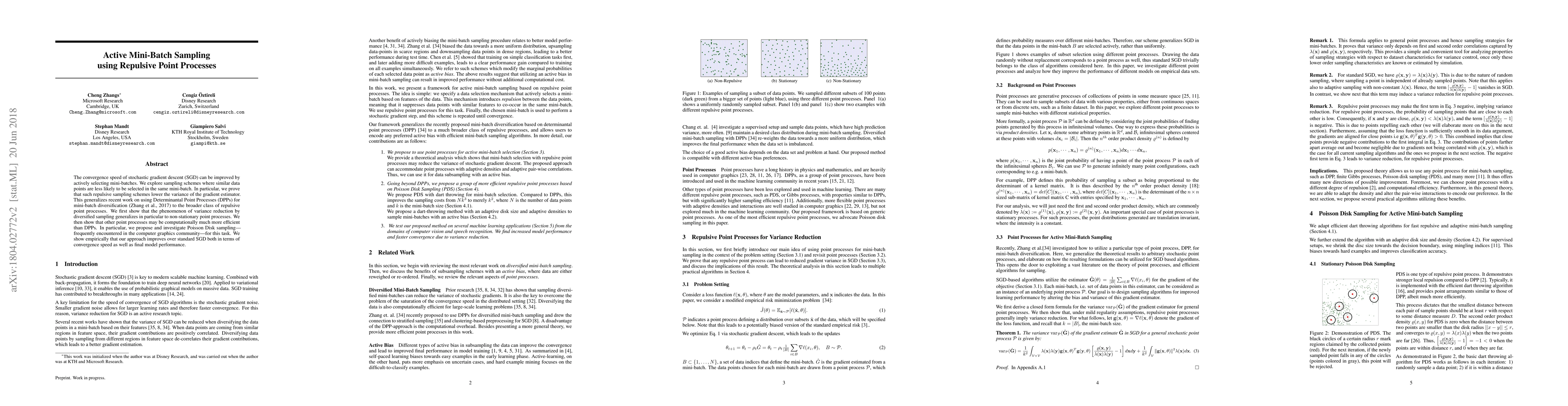 This paper proposes active mini-batch sampling strategies using repulsive point processes to improve the convergence speed of stochastic gradient descent (SGD). It demonstrates that such schemes reduce gradient estimator variance and outperform standard SGD in both speed and final model performance.
