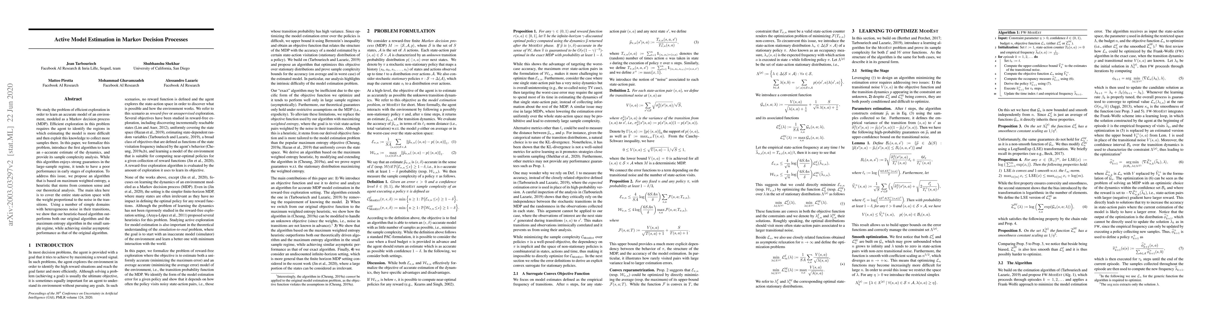 We study the problem of efficient exploration in order to learn an accurate model of an environment, modeled as a Markov decision process (MDP). Efficient exploration in this problem requires the agent to identify the regions in which estimating the model is more difficult and then exploit this knowledge to collect more samples there. In this paper, we formalize this problem, introduce the first algorithm to learn an $\epsilon$-accurate estimate of the dynamics, and provide its sample complexity analysis. While this algorithm enjoys strong guarantees in the large-sample regime, it tends to have a poor performance in early stages of exploration. To address this issue, we propose an algorithm that is based on maximum weighted entropy, a heuristic that stems from common sense and our theoretical analysis. The main idea here is to cover the entire state-action space with the weight proportional to the noise in the transitions. Using a number of simple domains with heterogeneous noise in their transitions, we show that our heuristic-based algorithm outperforms both our original algorithm and the maximum entropy algorithm in the small sample regime, while achieving similar asymptotic performance as that of the original algorithm.
