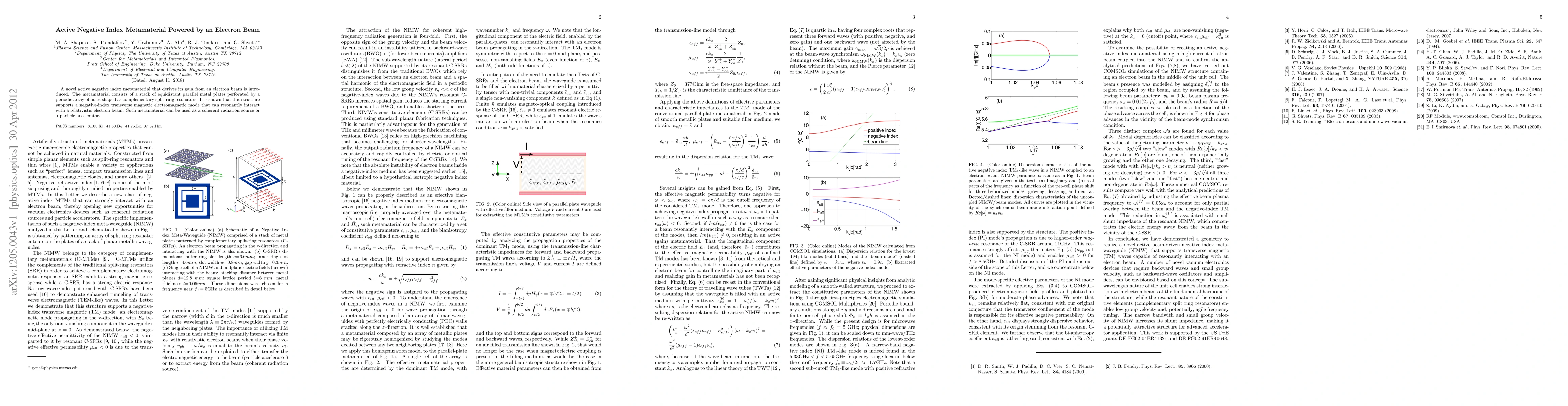 This paper introduces an active negative index metamaterial powered by an electron beam, consisting of perforated metal plates with split-ring resonators. The metamaterial supports a negative-index electromagnetic mode that interacts with the electron beam, potentially enabling applications in coherent radiation sources or particle accelerators.