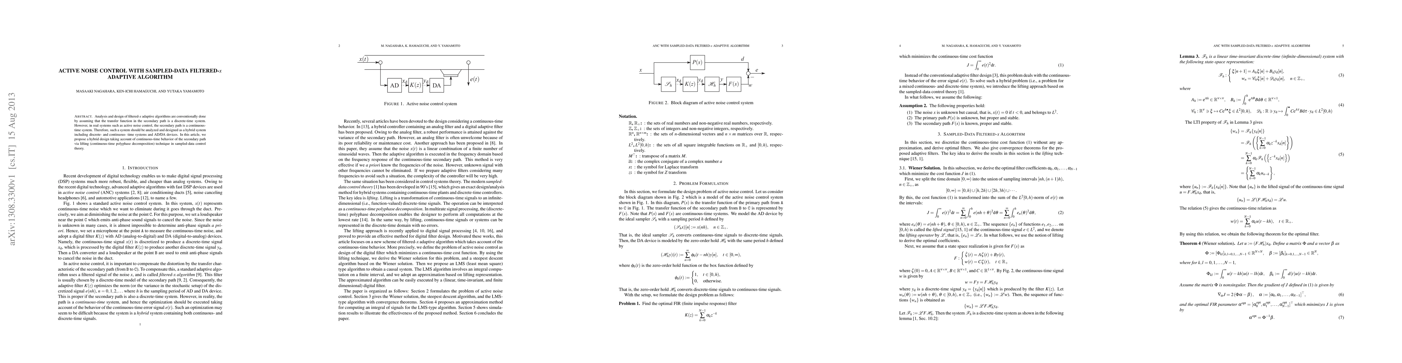 Researchers propose a hybrid design for active noise control systems that accounts for continuous-time behavior of secondary paths using lifting technique in sampled-data control theory. This approach enables the analysis and design of filtered-x adaptive algorithms for real-world systems.