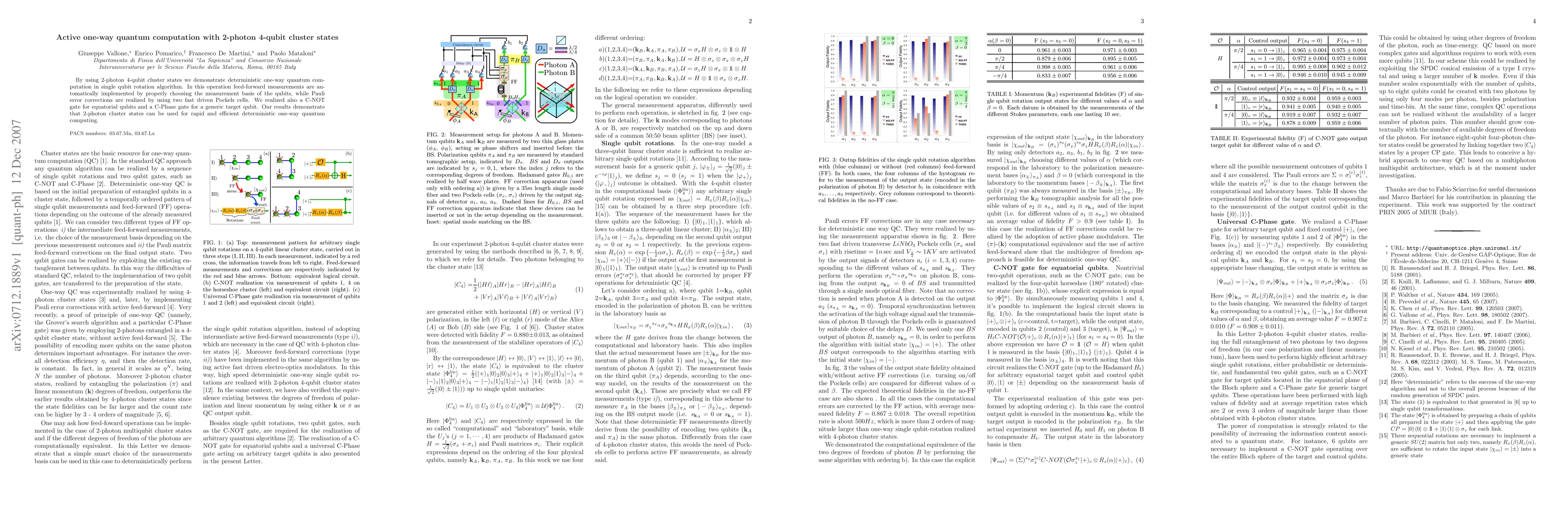This paper demonstrates deterministic one-way quantum computation using 2-photon 4-qubit cluster states, implementing single qubit rotations and C-NOT and C-Phase gates through feed-forward measurements and error correction with Pockels cells. The results show the potential of 2-photon cluster states for efficient quantum computing.