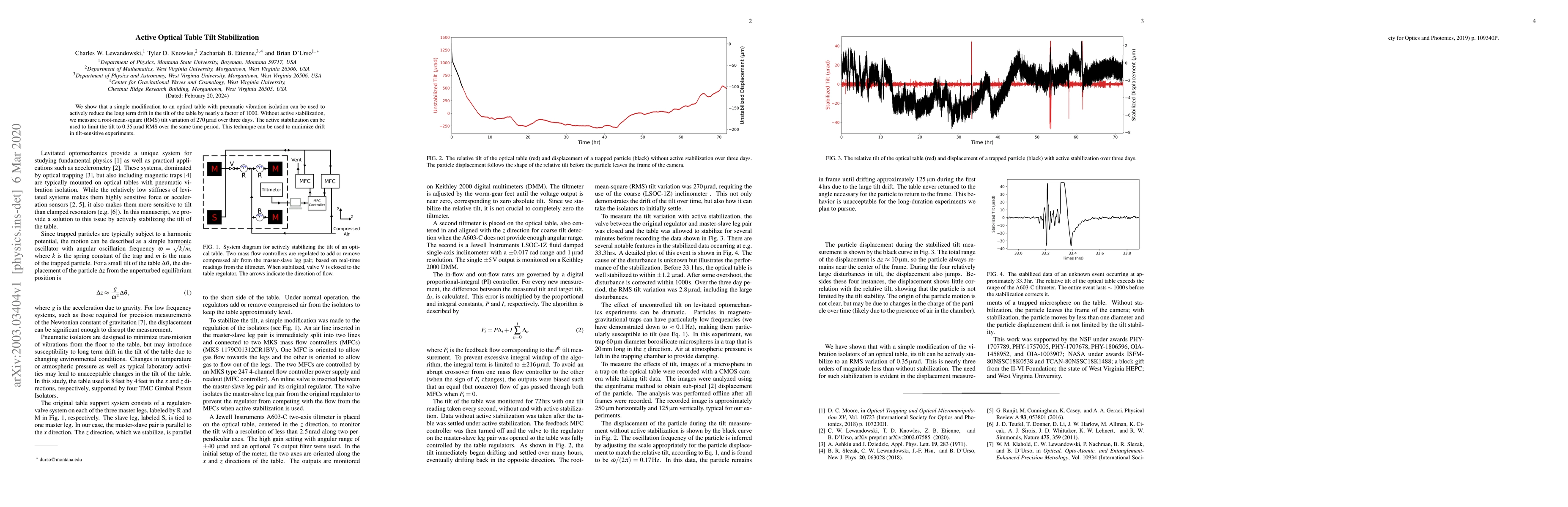 The research used a simple modification to an optical table with pneumatic vibration isolation to actively reduce the long-term drift in the tilt of the table.