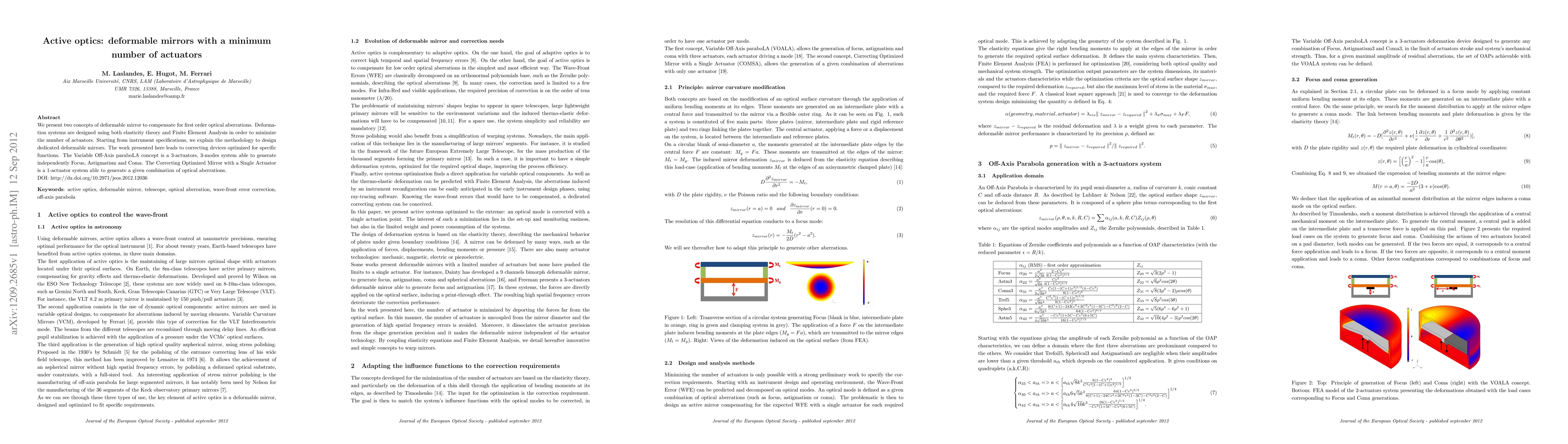 Researchers designed two types of deformable mirrors to correct first-order optical aberrations, achieving complex correction functions with a minimal number of actuators.