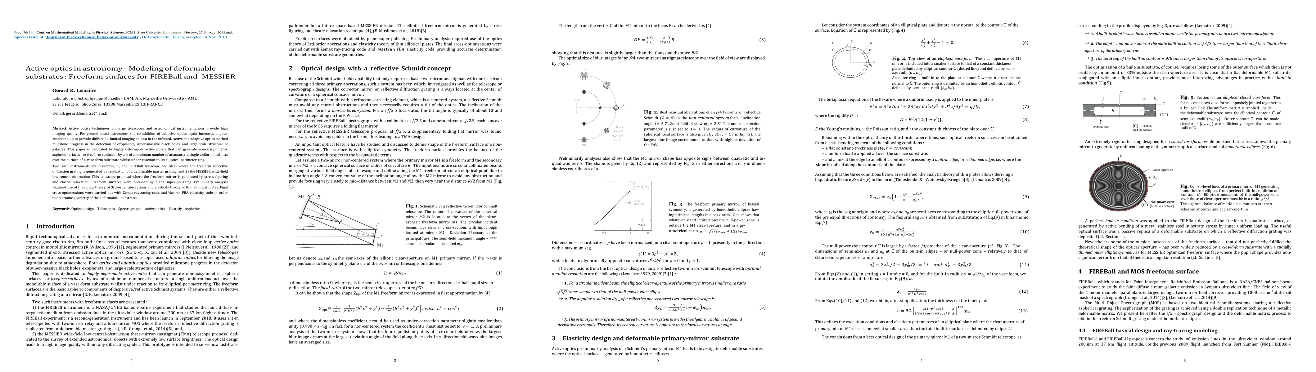 This paper explores the modeling of freeform deformable substrates in active optics for astronomical instruments, focusing on generating non-axisymmetric surfaces using minimal actuators. It presents two instruments: the FIREBall telescope and the MESSIER telescope proposal, utilizing freeform reflective diffraction gratings and mirrors, respectively.
