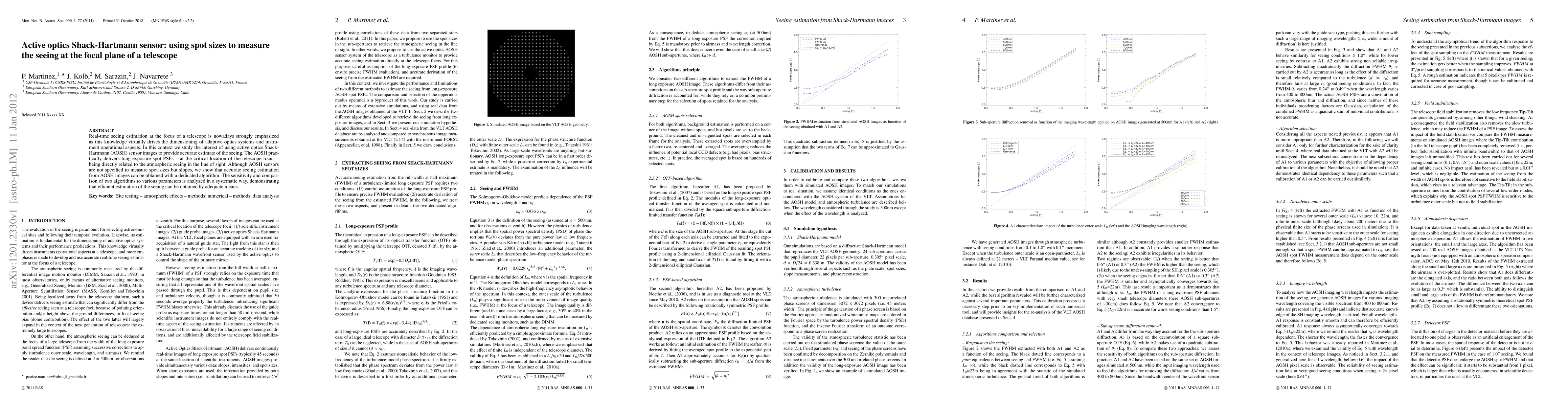 Researchers developed an algorithm to estimate seeing at a telescope's focal plane using Active Optics Shack-Hartmann sensor images, improving adaptive optics system design and instrument operation.