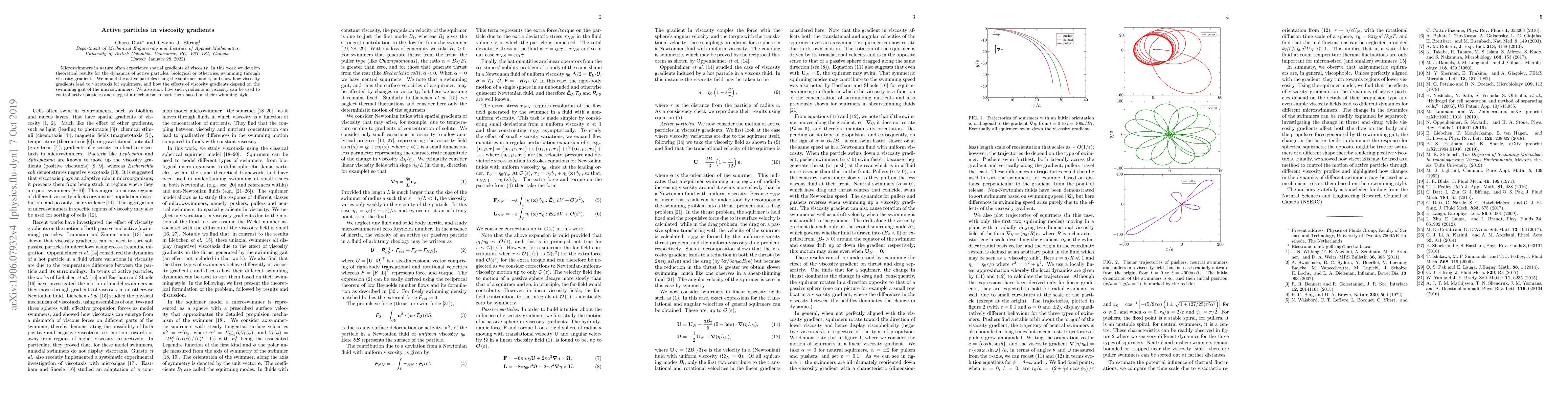 This paper develops theoretical insights into the dynamics of active particles, such as microswimmers, navigating through viscosity gradients, revealing the phenomenon of viscotaxis and proposing a method to control and sort these particles based on their swimming behavior. The squirmer model is employed to illustrate the influence of viscosity gradients on different swimming gaits.