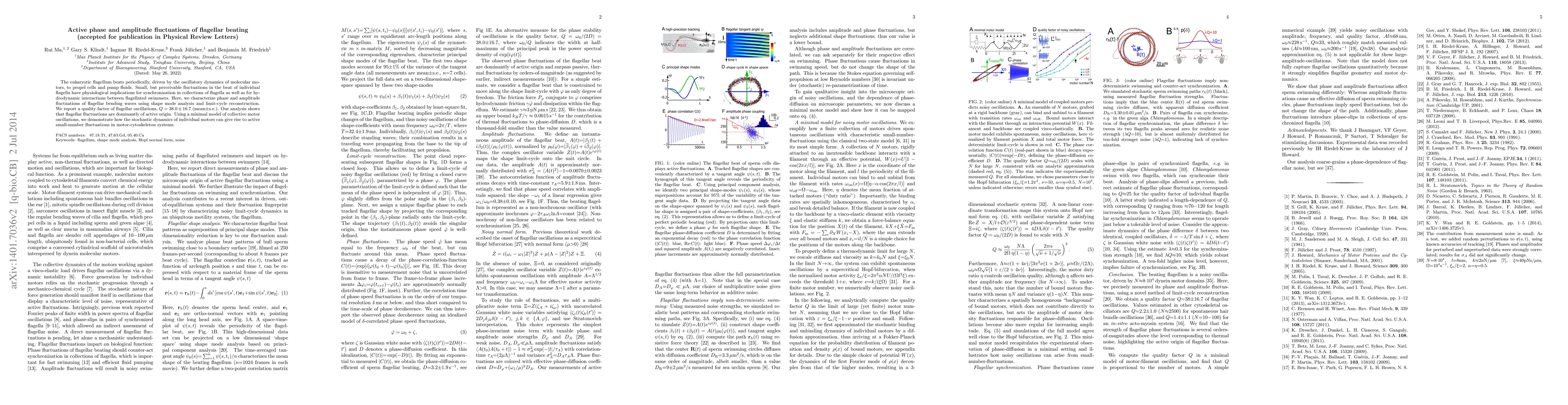This paper characterizes the phase and amplitude fluctuations in flagellar beating, revealing that these fluctuations are primarily of active origin driven by molecular motor dynamics. The study employs shape mode analysis and a minimal model to show how individual motor stochasticity can lead to synchronized fluctuations in flagellar systems.