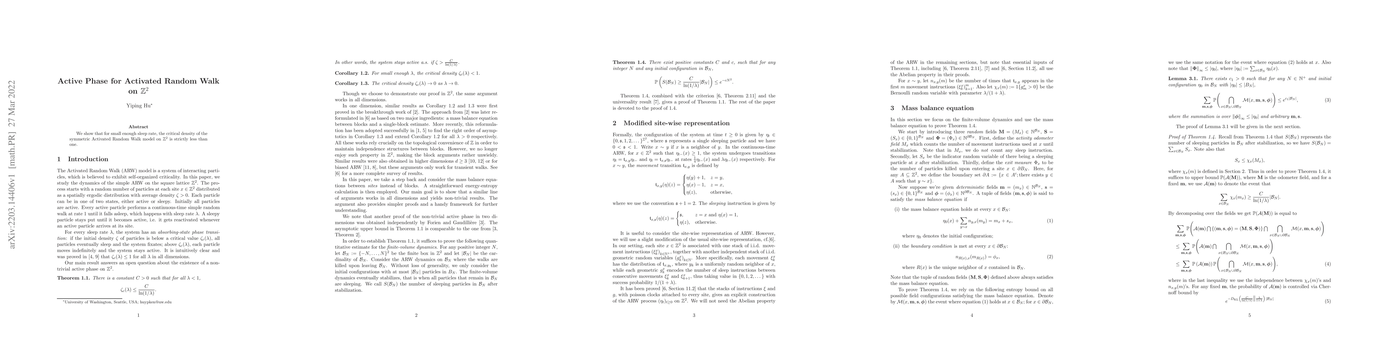 Summary: This paper demonstrates that for sufficiently low sleep rates, the critical density for the symmetric Activated Random Walk model on a two-dimensional lattice is strictly below one, indicating a phase where activity persists.