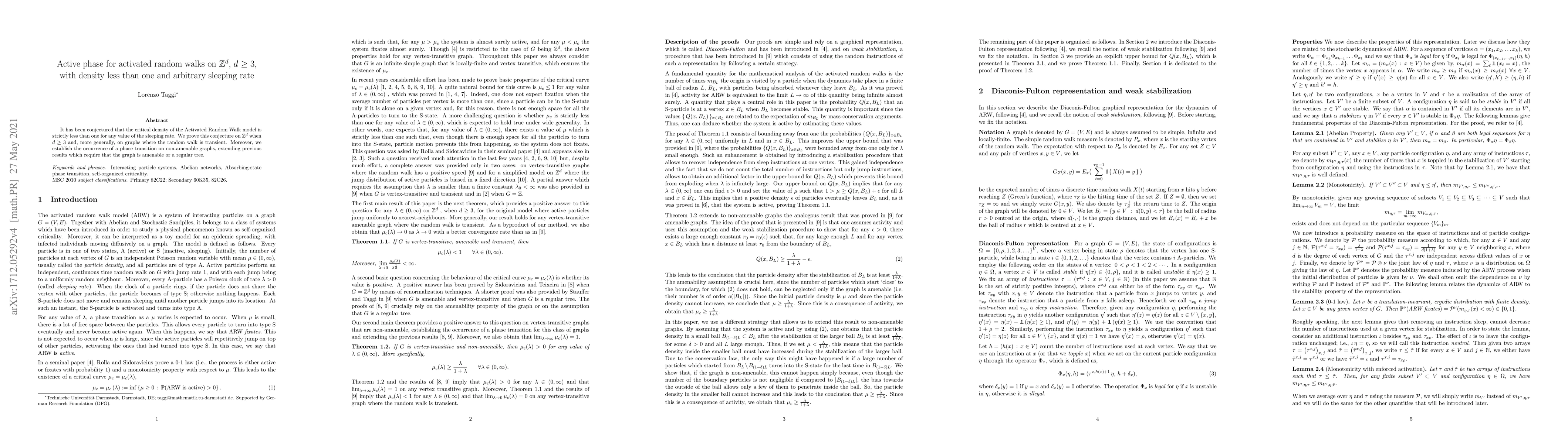 This paper proves that the critical density for the Activated Random Walk model is strictly less than one for dimensions $d \geq 3$ and arbitrary sleeping rates, confirming a longstanding conjecture. It also identifies a phase transition on non-amenable graphs, extending the applicability beyond amenable graphs or regular trees.