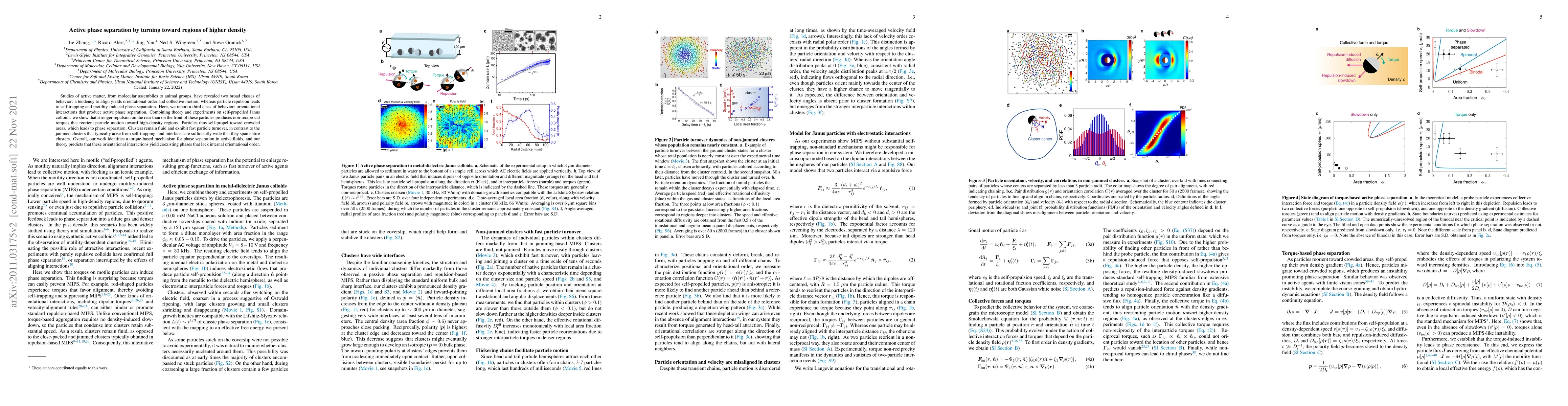 Studies of active matter, from molecular assemblies to animal groups, have revealed two broad classes of behavior: a tendency to align yields orientational order and collective motion, whereas particle repulsion leads to self-trapping and motility-induced phase separation. Here, we report a third class of behavior: orientational interactions that produce active phase separation. Combining theory and experiments on self-propelled Janus colloids, we show that stronger repulsion on the rear than on the front of these particles produces non-reciprocal torques that reorient particle motion toward high-density regions. Particles thus self-propel toward crowded areas, which leads to phase separation. Clusters remain fluid and exhibit fast particle turnover, in contrast to the jammed clusters that typically arise from self-trapping, and interfaces are sufficiently wide that they span entire clusters. Overall, our work identifies a torque-based mechanism for phase separation in active fluids, and our theory predicts that these orientational interactions yield coexisting phases that lack internal orientational order.