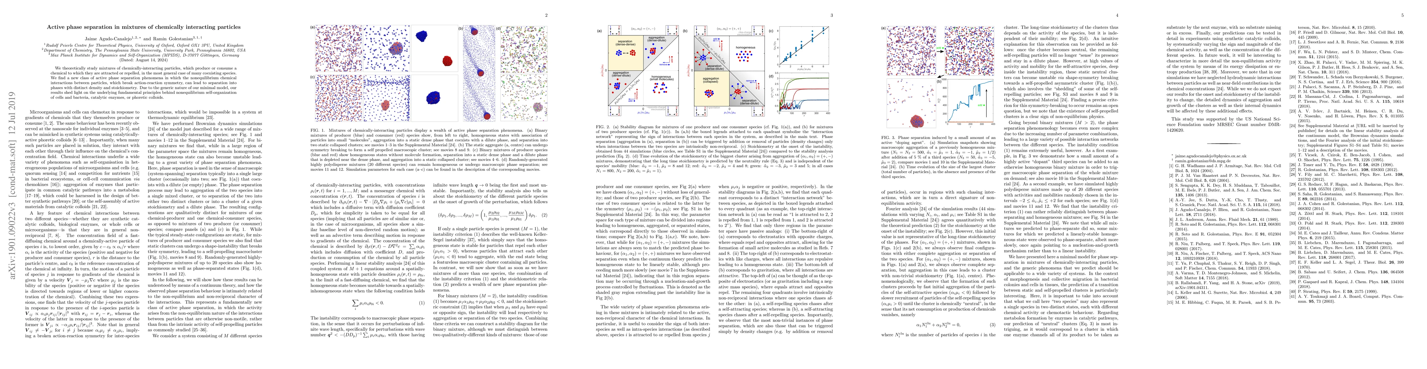 This paper explores mixtures of chemically interacting particles that produce or consume a chemical they are attracted or repelled by, revealing a new class of active phase separation phenomena driven by nonequilibrium chemical interactions. The findings provide insights into the fundamental principles of nonequilibrium self-organization in biological and catalytic systems.