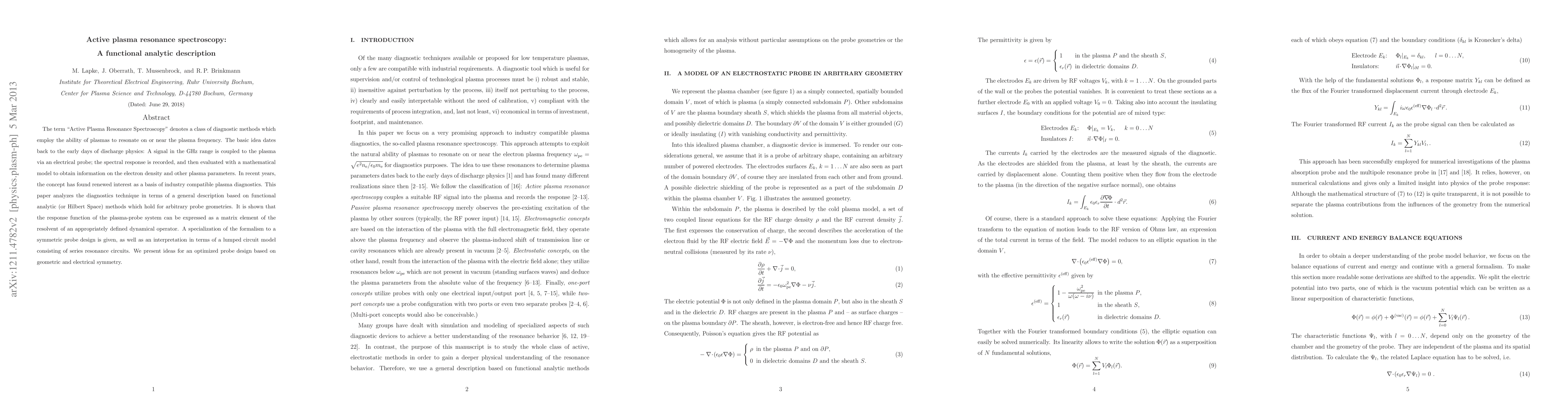 Active Plasma Resonance Spectroscopy is analyzed using functional analytic methods to describe a diagnostic technique that uses plasmas to resonate at specific frequencies, providing information on plasma parameters.