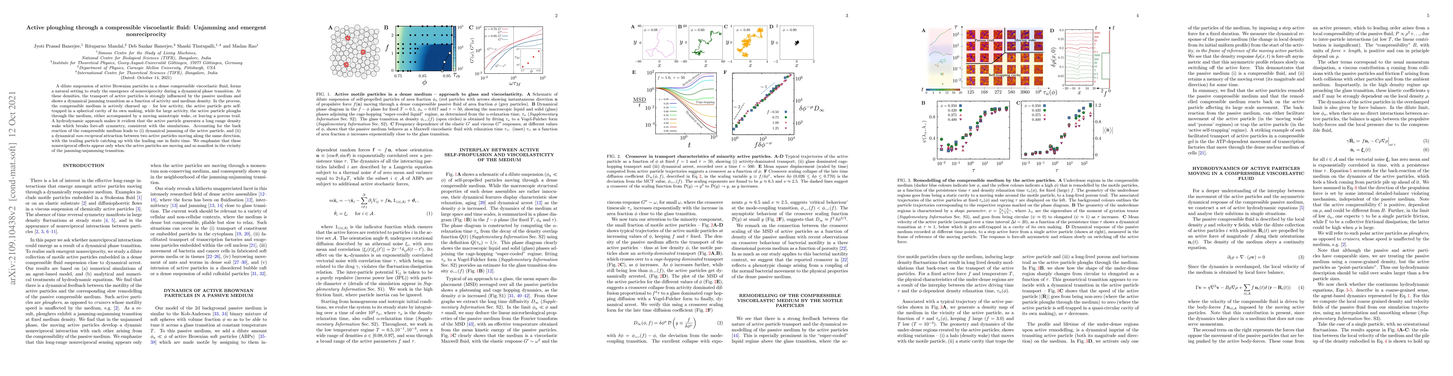 Research finds that active particles in a compressible fluid exhibit nonreciprocal behavior during jamming transitions, where they plough through the medium or leave behind a porous trail, breaking fore-aft symmetry and attracting trailing particles.