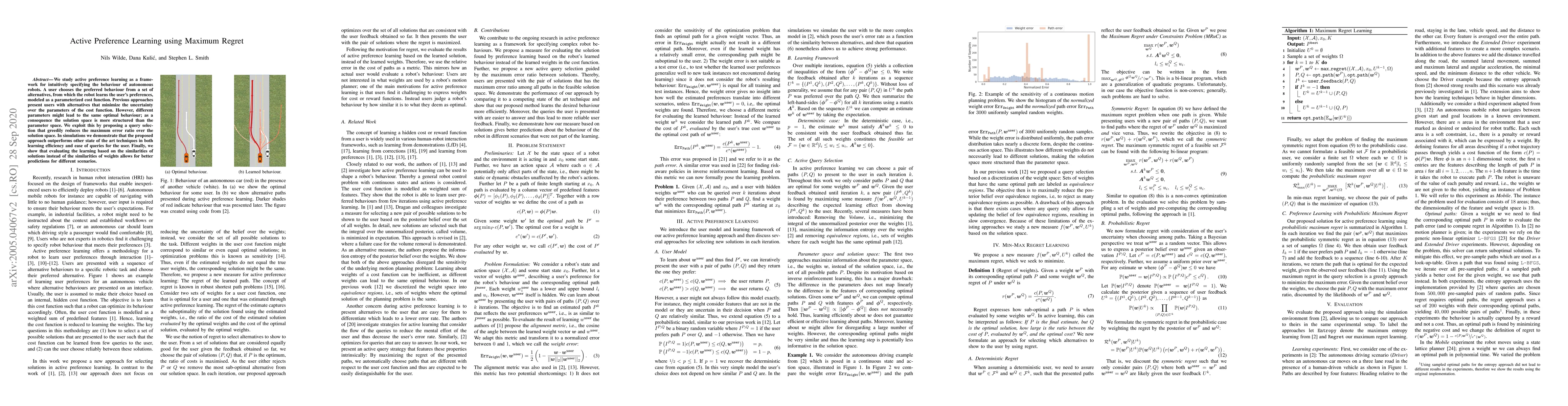 We study active preference learning as a framework for intuitively specifying the behaviour of autonomous robots. In active preference learning, a user chooses the preferred behaviour from a set of alternatives, from which the robot learns the user's preferences, modeled as a parameterized cost function. Previous approaches present users with alternatives that minimize the uncertainty over the parameters of the cost function. However, different parameters might lead to the same optimal behaviour; as a consequence the solution space is more structured than the parameter space. We exploit this by proposing a query selection that greedily reduces the maximum error ratio over the solution space. In simulations we demonstrate that the proposed approach outperforms other state of the art techniques in both learning efficiency and ease of queries for the user. Finally, we show that evaluating the learning based on the similarities of solutions instead of the similarities of weights allows for better predictions for different scenarios.