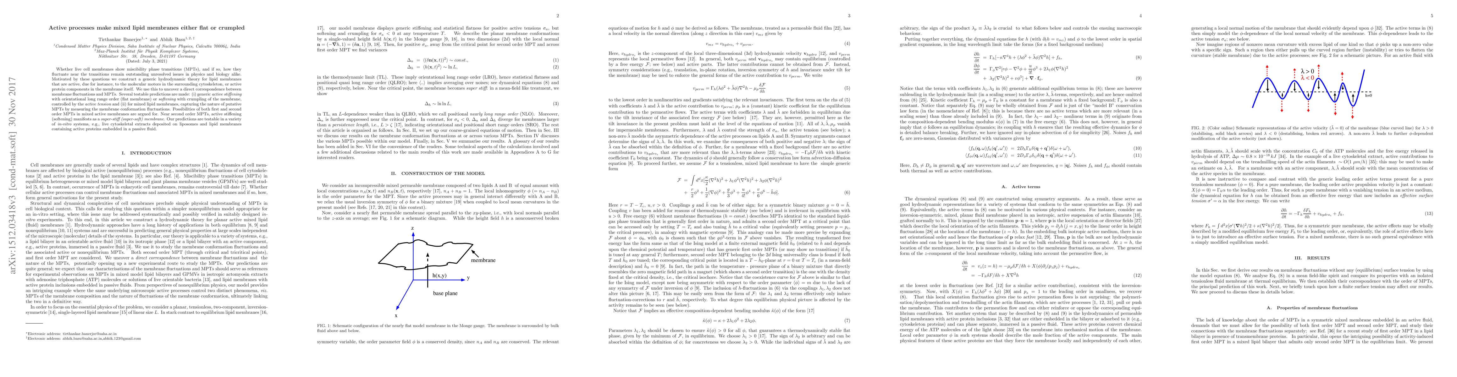This paper develops a hydrodynamic theory for active lipid membranes, revealing that active processes can cause these membranes to either flatten or become crumpled. The study predicts active stiffening or softening, controlled by active tension, and suggests that mixed lipid membranes may exhibit first or second order miscibility phase transitions, detectable through membrane conformation fluctuations.