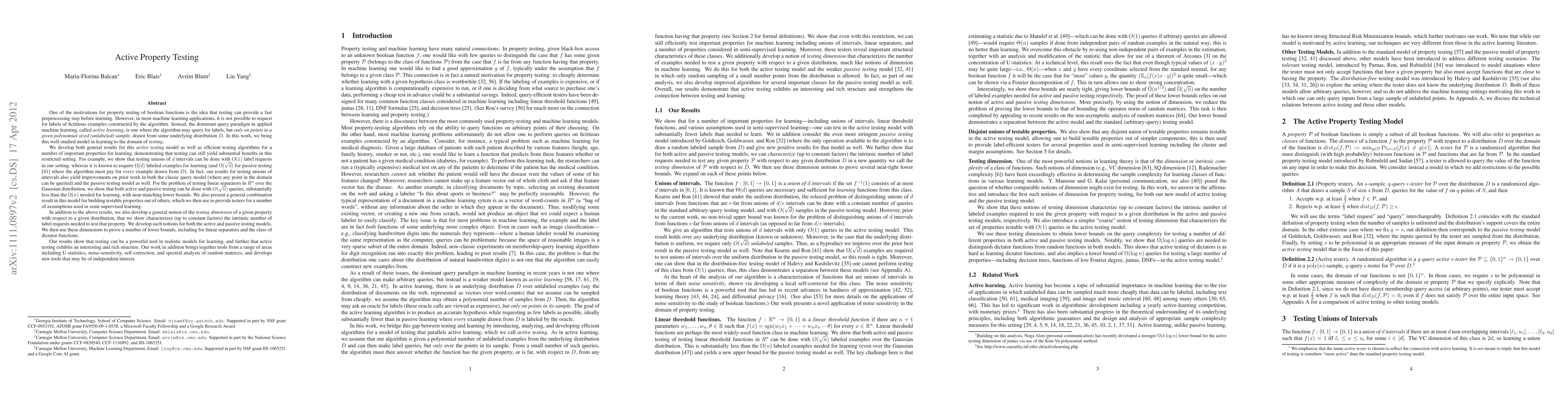 This paper explores the application of active property testing in machine learning, demonstrating that it can effectively serve as a preprocessing step despite the constraints of active learning. It introduces the concept of testing dimension to characterize the number of label requests needed and proves lower bounds for various properties, highlighting the potential of testing in realistic learning scenarios.