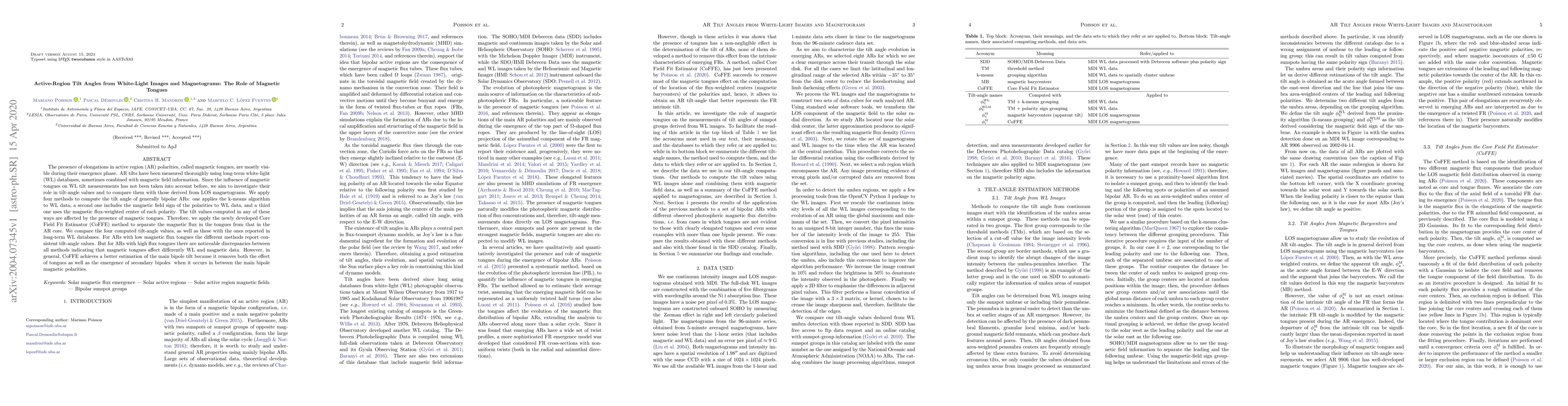 This study investigates the impact of magnetic tongues on the measurement of active-region tilt angles using white-light images and magnetograms. The Core Field Fit Estimator (CoFFE) method is developed to separate tongue flux from the main bipole, revealing that magnetic tongues significantly affect tilt angle measurements, especially in regions with high flux tongues. CoFFE provides a more accurate tilt estimation by excluding the influence of tongues and secondary bipoles.
