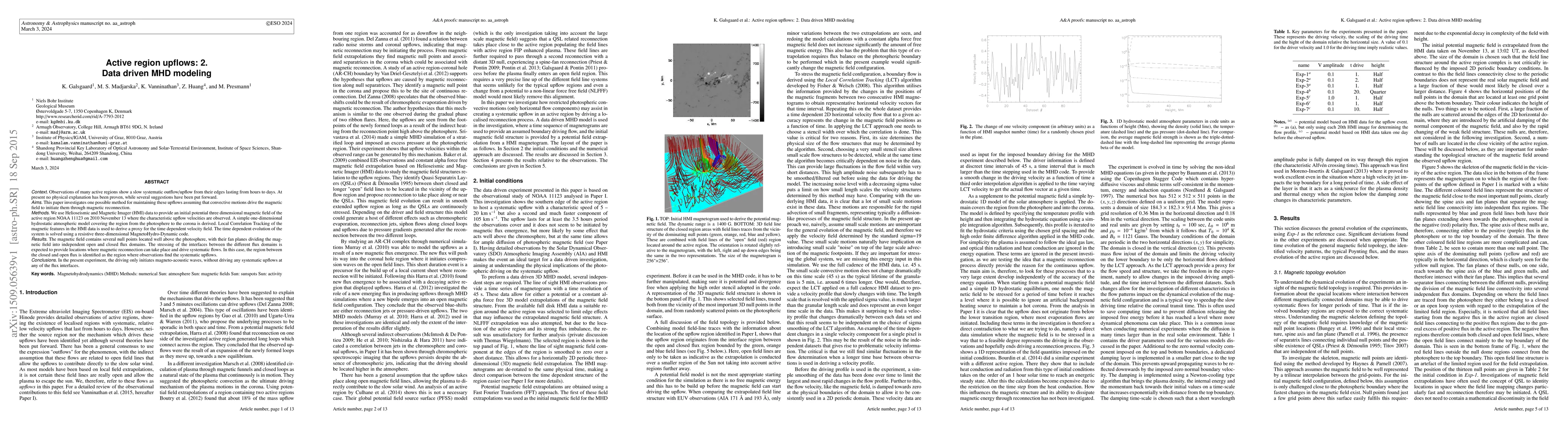 Context. Observations of many active regions show a slow systematic outflow/upflow from their edges lasting from hours to days. At present no physical explanation has been proven, while several suggestions have been put forward. Aims. This paper investigates one possible method for maintaining these upflows assuming that convective motions drive the magnetic field to initiate them through magnetic reconnection. Methods. We use Helioseismic and Magnetic Imager (HMI) data to provide an initial potential three dimensional magnetic field of the active region NOAA 11123 on 2010 November 13 where the characteristic upflow velocities are observed. A simple one-dimensional hydrostatic atmospheric model covering the region from the photosphere to the corona is derived. Local Correlation Tracking of the magnetic features in the HMI data is used to derive a proxy for the time dependent velocity field. The time dependent evolution of the system is solved using a resistive three-dimensional MagnetoHydro-Dynamic code. Results. The magnetic field contains several null points located well above the photosphere, with their fan planes dividing the magnetic field into independent open and closed flux domains. The stressing of the interfaces between the different flux domains is expected to provide locations where magnetic reconnection can take place and drive systematic flows. In this case, the region between the closed and open flux is identified as the region where observations find the systematic upflows. Conclusions. In the present experiment, the driving only initiates magneto-acoustic waves, without driving any systematic upflows at any of the flux interfaces.
