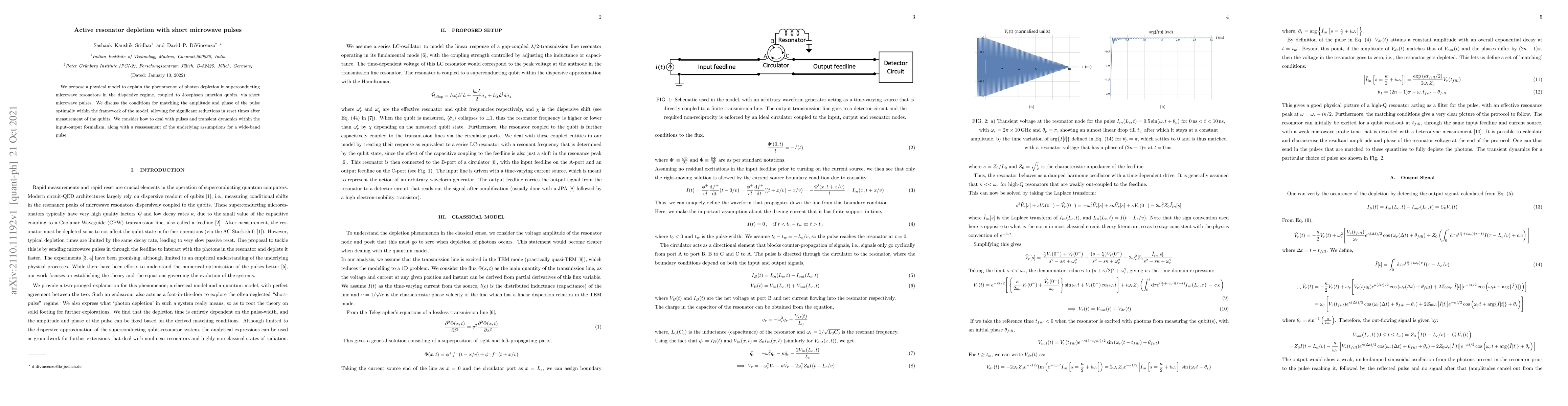 We propose a physical model to explain the phenomenon of photon depletion in superconducting microwave resonators in the dispersive regime, coupled to Josephson junction qubits, via short microwave pulses. We discuss the conditions for matching the amplitude and phase of the pulse optimally within the framework of the model, allowing for significant reductions in reset times after measurement of the qubits. We consider how to deal with pulses and transient dynamics within the input-output formalism, along with a reassessment of the underlying assumptions for a wide-band pulse.