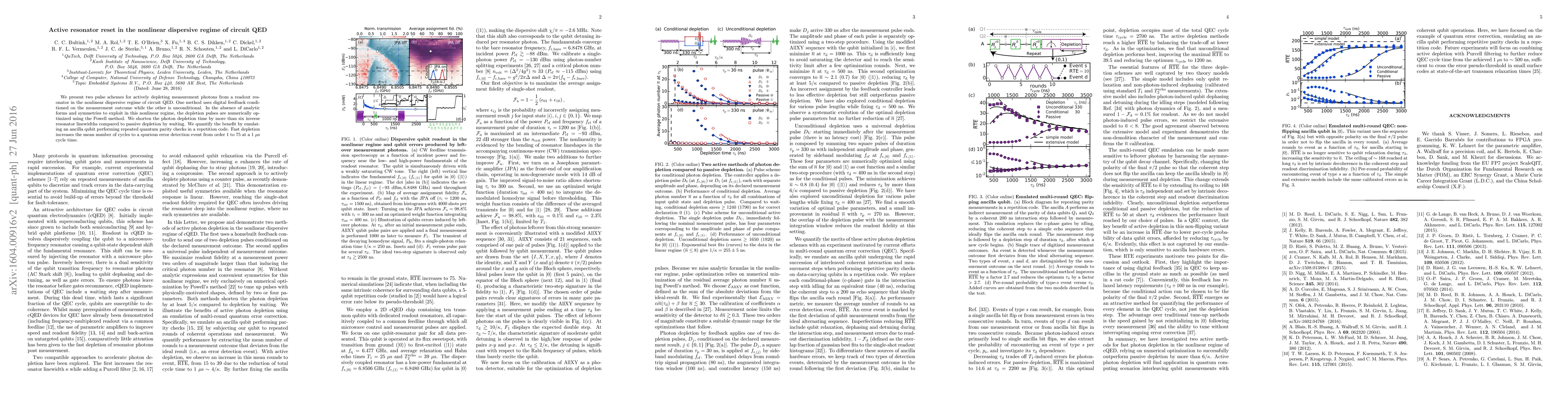 This paper proposes two pulse schemes for rapidly depleting measurement photons from a readout resonator in circuit QED's nonlinear dispersive regime, optimizing them numerically. The active reset method significantly reduces photon depletion time, enhancing the mean number of cycles before spurious error detection in quantum parity checks.
