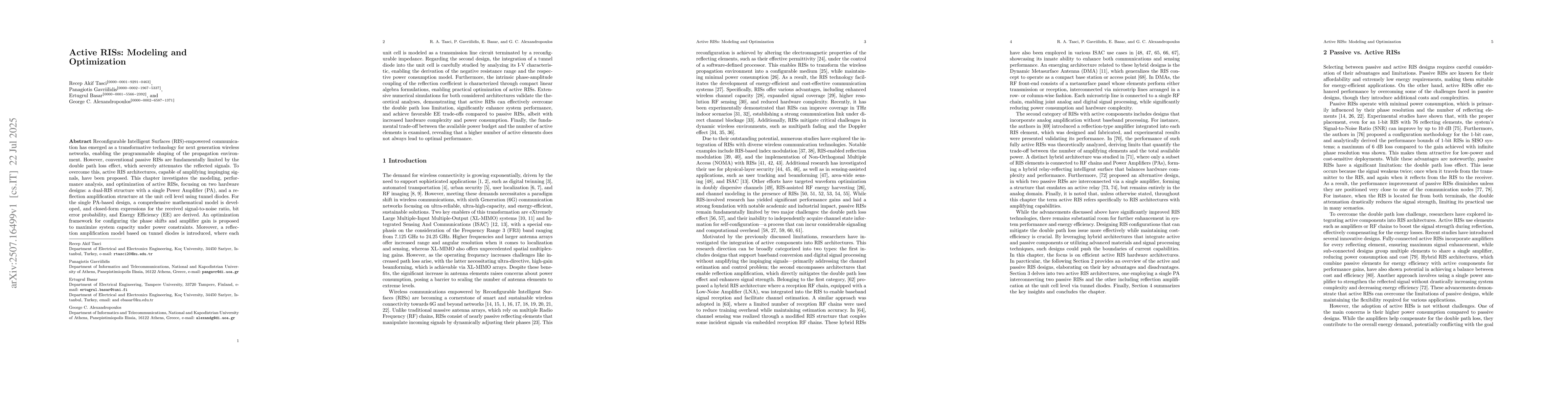 The paper introduces detailed modeling frameworks, architectural designs, and performance analyses for active RISs, addressing the limitations of traditional passive RISs.