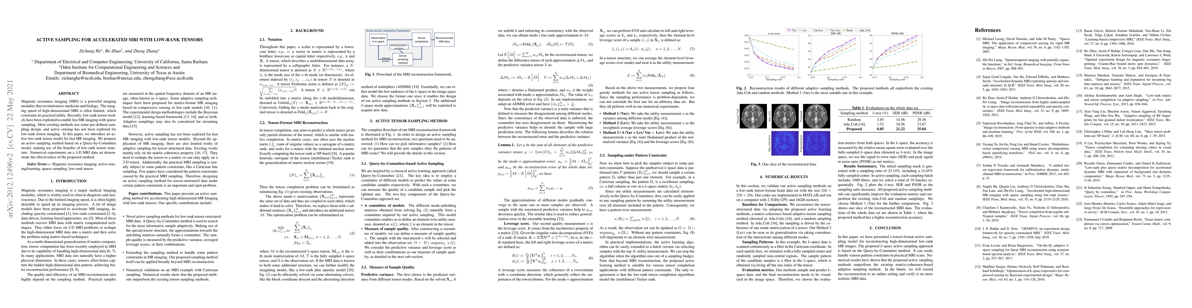 This paper introduces an active sampling method for accelerated MRI using low-rank tensors, leveraging a Query-by-Committee model to optimize sampling design. Numerical experiments on a 3-D MRI dataset show the effectiveness of the proposed approach in enhancing imaging speed.