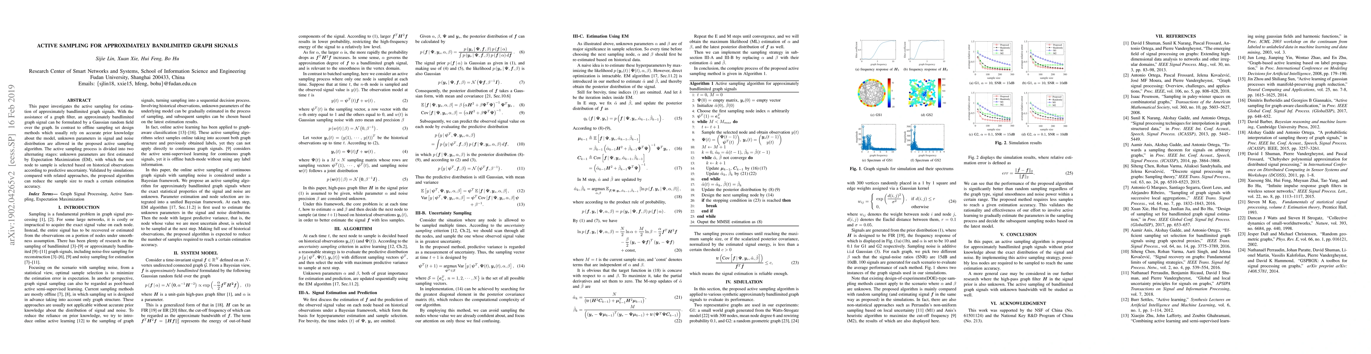 This paper proposes an active sampling algorithm for estimating approximately bandlimited graph signals, allowing for unknown parameters in the signal and noise distribution. The algorithm alternates between parameter estimation using Expectation Maximization and selecting the next node to sample based on predictive uncertainty, reducing the sample size while maintaining estimation accuracy.