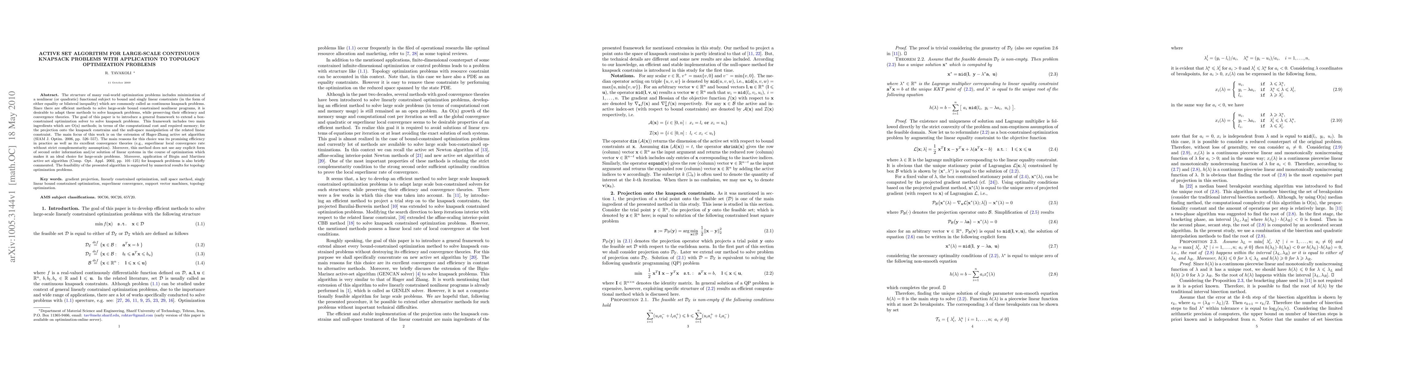 This paper introduces an efficient active set algorithm to solve large-scale continuous knapsack problems, focusing on extending the Hager-Zhang method. It highlights the algorithm's O(n) computational cost and memory requirements, and demonstrates its application to topology optimization problems through numerical results.