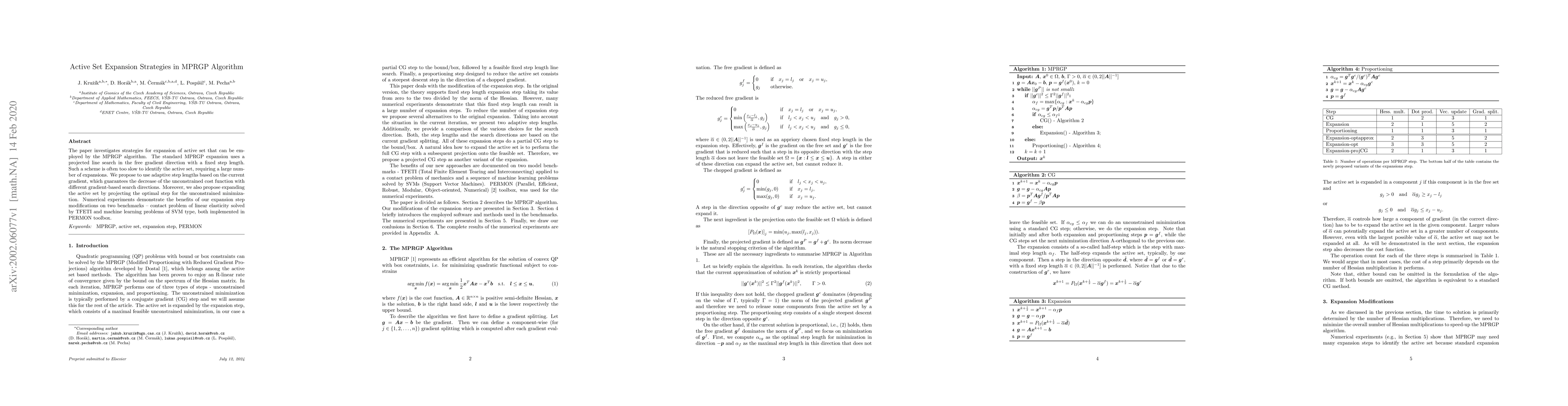 The paper investigates strategies for expansion of active set that can be employed by the MPRGP algorithm. The standard MPRGP expansion uses a projected line search in the free gradient direction with a fixed step length. Such a scheme is often too slow to identify the active set, requiring a large number of expansions. We propose to use adaptive step lengths based on the current gradient, which guarantees the decrease of the unconstrained cost function with different gradient-based search directions. Moreover, we also propose expanding the active set by projecting the optimal step for the unconstrained minimization. Numerical experiments demonstrate the benefits of our expansion step modifications on two benchmarks -- contact problem of linear elasticity solved by TFETI and machine learning problems of SVM type, both implemented in PERMON toolbox.