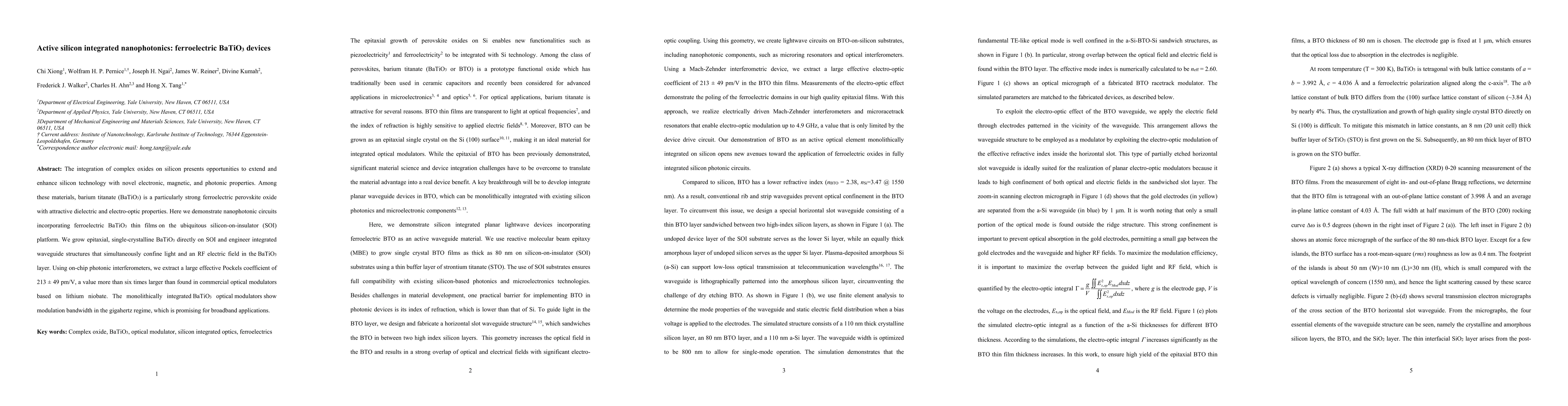 This paper demonstrates the integration of ferroelectric BaTiO3 thin films onto silicon-on-insulator platforms, creating advanced nanophotonic circuits. The study reports a significant effective Pockels coefficient, over six times larger than commercial optical modulators, and a modulation bandwidth suitable for broadband applications.