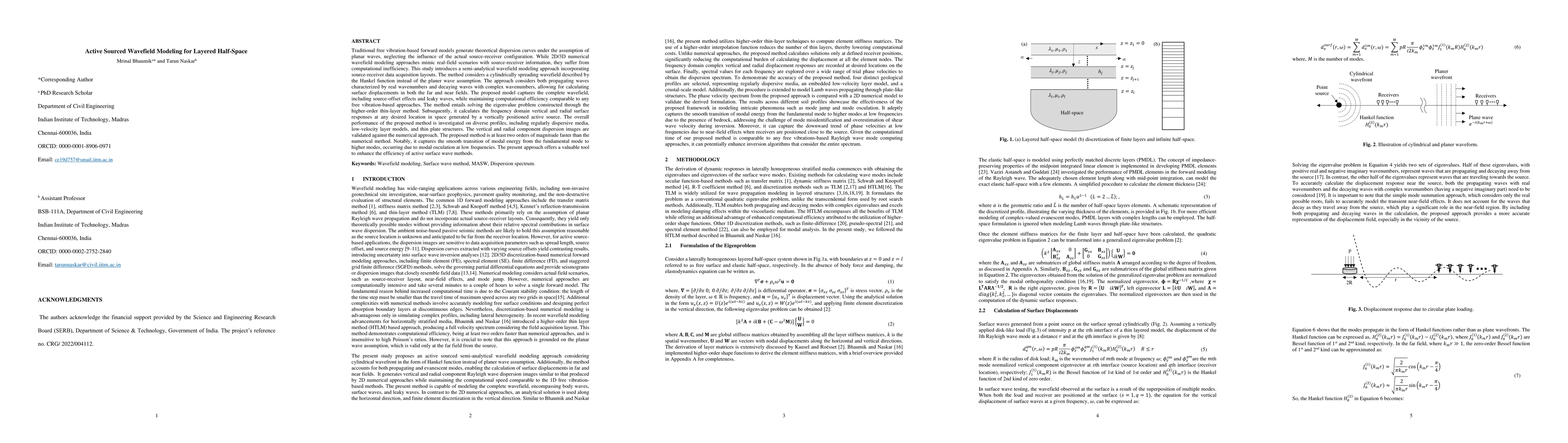 This paper proposes a semi-analytical wavefield modeling approach for layered half-spaces that incorporates source-receiver configurations, improving upon traditional free vibration models. It efficiently calculates surface displacements while capturing source-offset effects and leaky waves, validated against numerical methods and showing significant speed improvements.