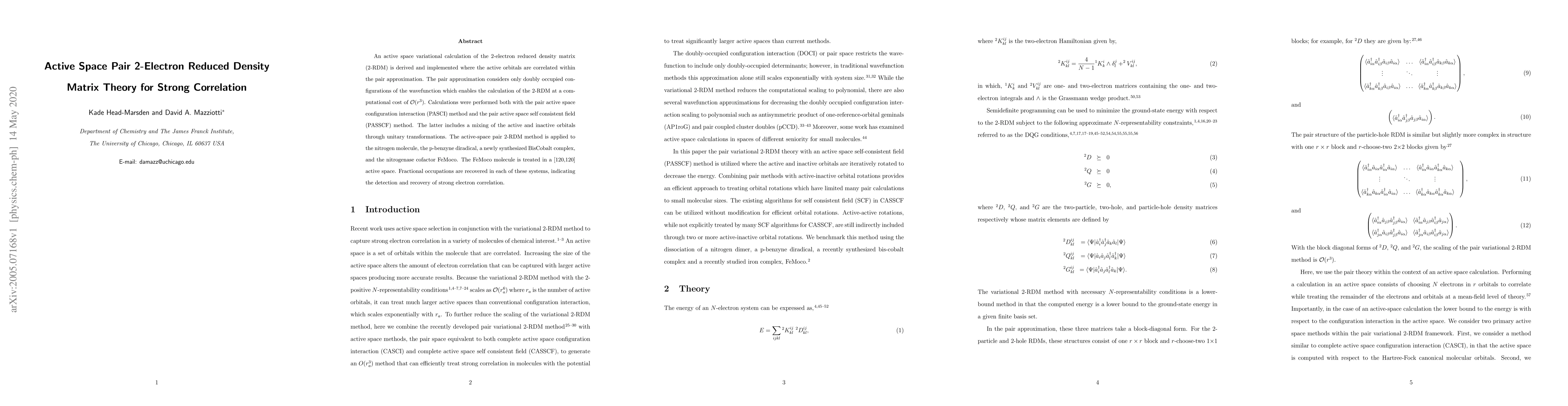 This paper introduces an active space pair 2-electron reduced density matrix theory for strong correlation, employing pair approximation to reduce computational cost. It applies the method to various molecules, demonstrating the recovery of fractional occupations and strong electron correlation effects.