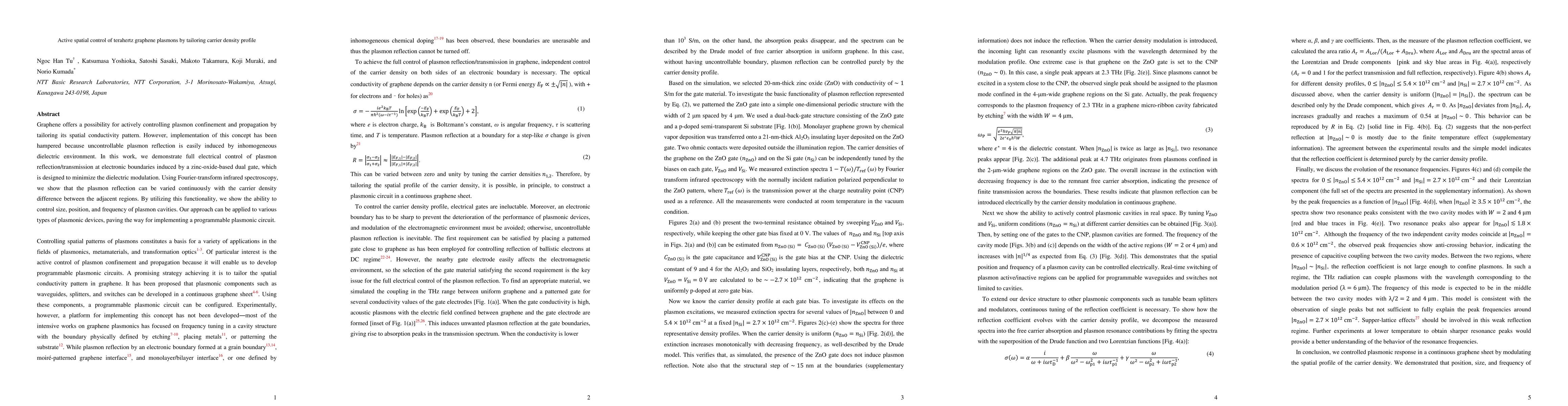 This paper demonstrates electrical control over terahertz graphene plasmons by tailoring carrier density profiles using a zinc-oxide-based dual gate, minimizing dielectric modulation effects. The study shows continuous variation of plasmon reflection/transmission and enables control over the size, position, and frequency of plasmon cavities, suggesting potential for programmable plasmonic circuits.