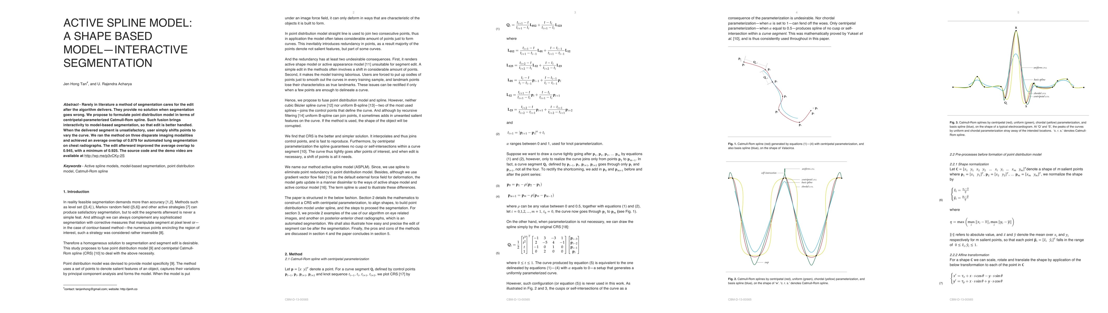 Rarely in literature a method of segmentation cares for the edit after the algorithm delivers. They provide no solution when segmentation goes wrong. We propose to formulate point distribution model in terms of centripetal-parameterized Catmull-Rom spline. Such fusion brings interactivity to model-based segmentation, so that edit is better handled. When the delivered segment is unsatisfactory, user simply shifts points to vary the curve. We ran the method on three disparate imaging modalities and achieved an average overlap of 0.879 for automated lung segmentation on chest radiographs. The edit afterward improved the average overlap to 0.945, with a minimum of 0.925. The source code and the demo video are available at http://wp.me/p3vCKy-2S