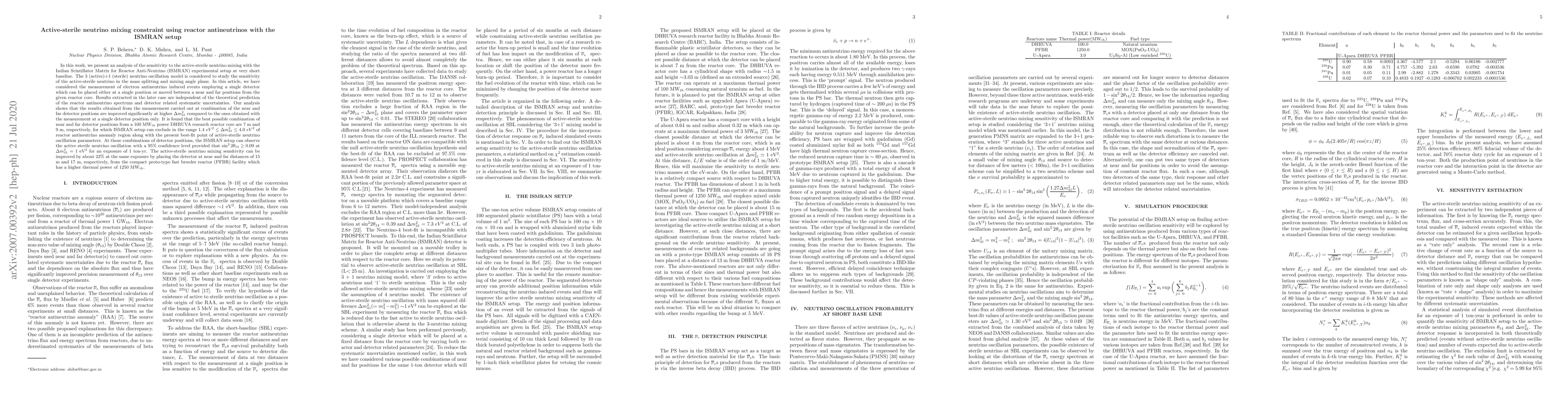 This paper investigates the sensitivity of the ISMRAN setup to active-sterile neutrino mixing using reactor antineutrinos, finding significant improvements in results from near and far detector positions. The optimal positions for a 100 MW$_{th}$ reactor exclude the reactor antineutrino anomaly region and allow for active-sterile neutrino observation at a 95% confidence level.