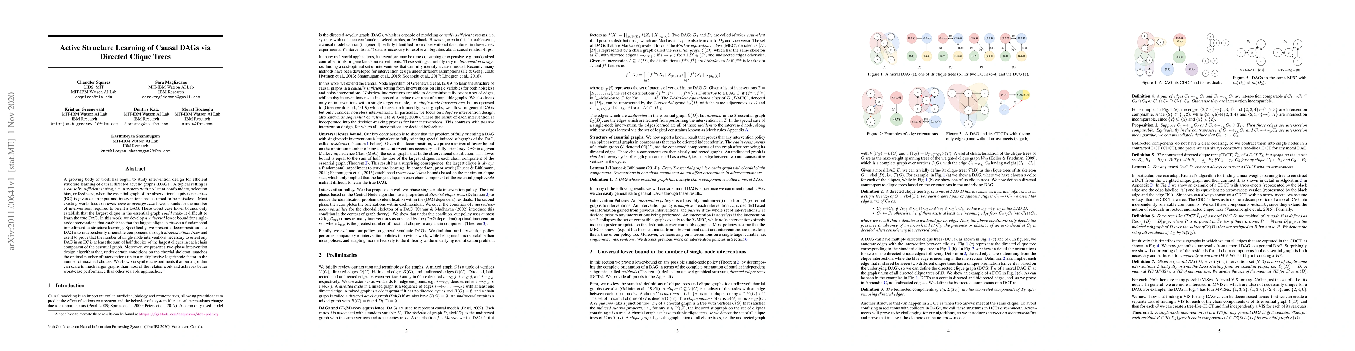A growing body of work has begun to study intervention design for efficient structure learning of causal directed acyclic graphs (DAGs). A typical setting is a causally sufficient setting, i.e. a system with no latent confounders, selection bias, or feedback, when the essential graph of the observational equivalence class (EC) is given as an input and interventions are assumed to be noiseless. Most existing works focus on worst-case or average-case lower bounds for the number of interventions required to orient a DAG. These worst-case lower bounds only establish that the largest clique in the essential graph could make it difficult to learn the true DAG. In this work, we develop a universal lower bound for single-node interventions that establishes that the largest clique is always a fundamental impediment to structure learning. Specifically, we present a decomposition of a DAG into independently orientable components through directed clique trees and use it to prove that the number of single-node interventions necessary to orient any DAG in an EC is at least the sum of half the size of the largest cliques in each chain component of the essential graph. Moreover, we present a two-phase intervention design algorithm that, under certain conditions on the chordal skeleton, matches the optimal number of interventions up to a multiplicative logarithmic factor in the number of maximal cliques. We show via synthetic experiments that our algorithm can scale to much larger graphs than most of the related work and achieves better worst-case performance than other scalable approaches. A code base to recreate these results can be found at https://github.com/csquires/dct-policy